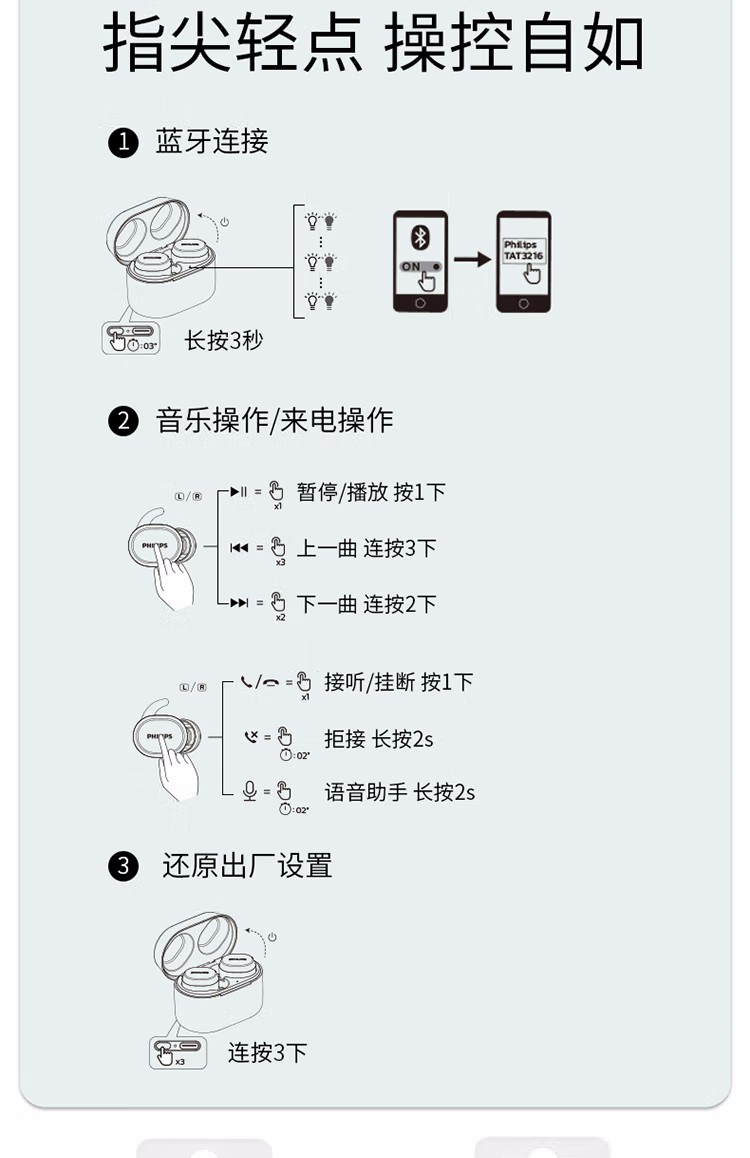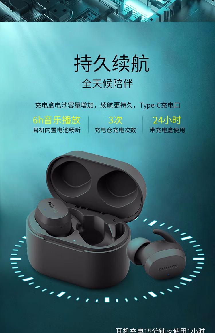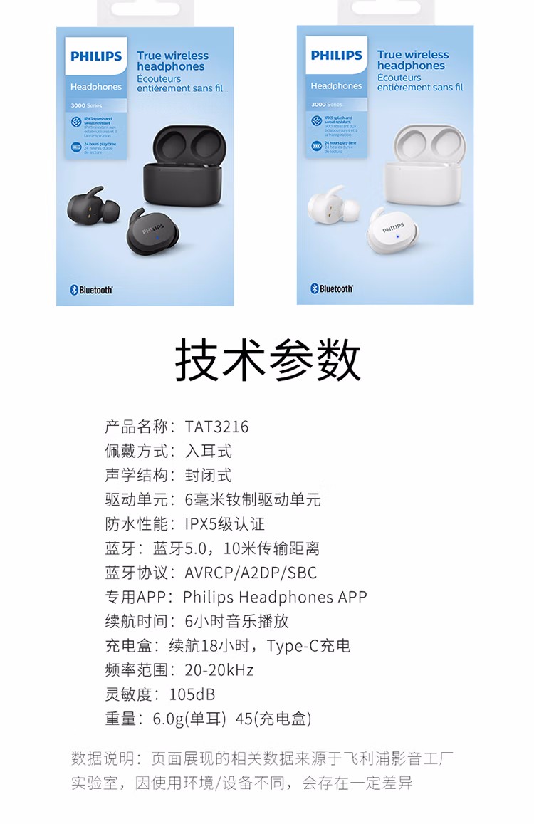 飞利浦真无线蓝牙耳机无线耳机音乐游戏耳机TAT3216