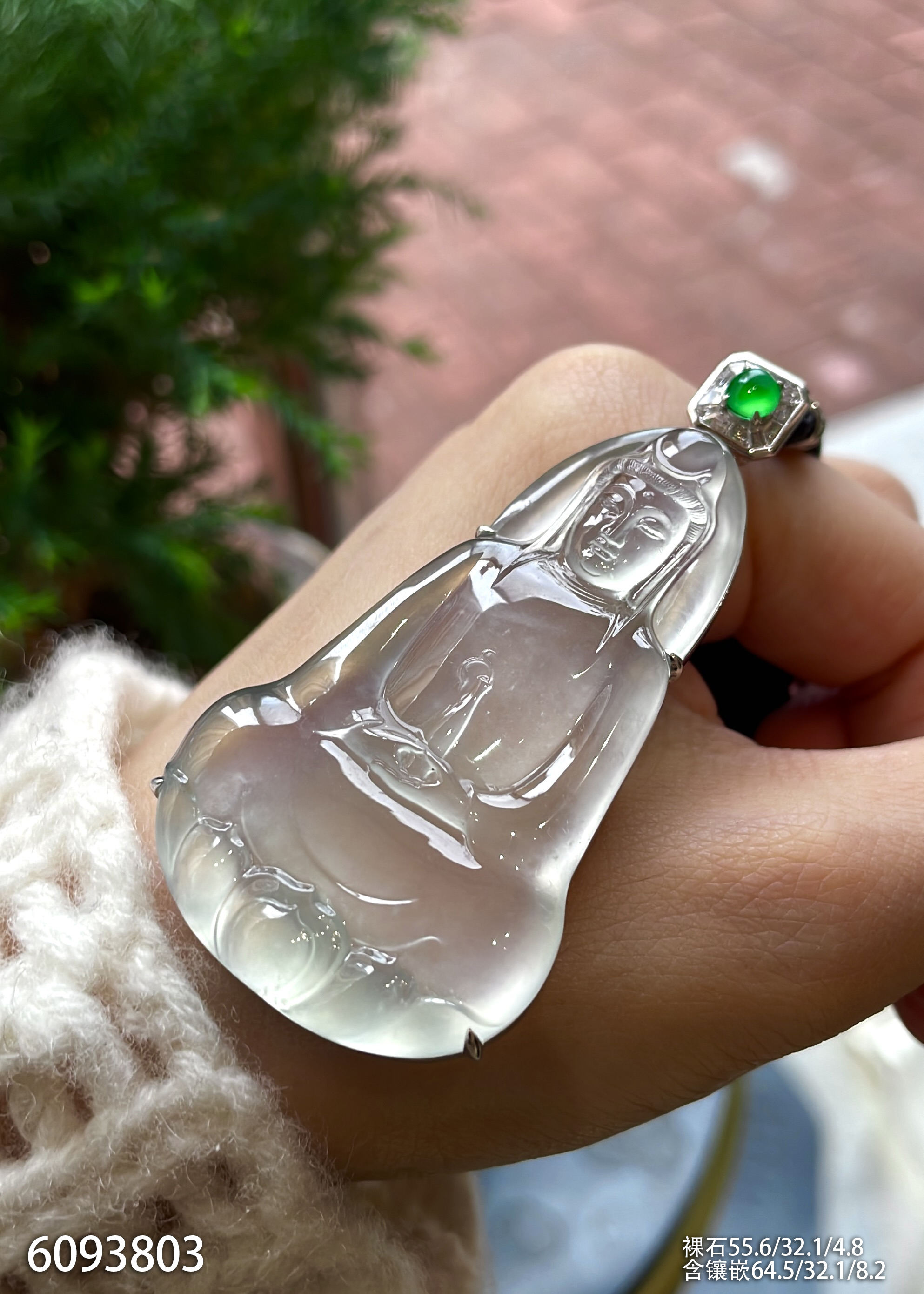 玻璃种观音吊坠【6093803】具体价格微信咨询