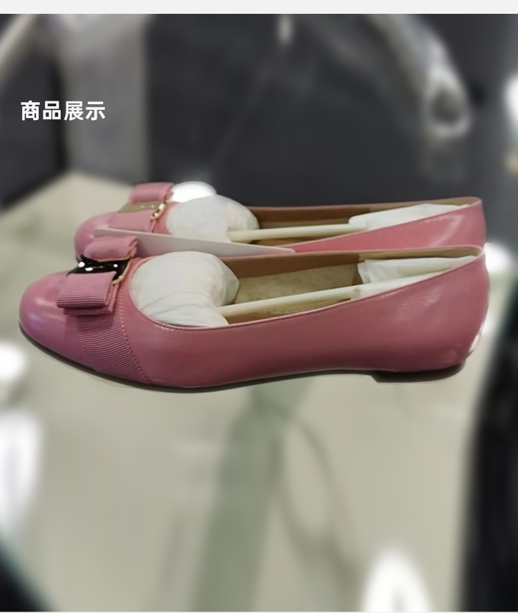 FERRAGAMO 菲拉格慕 女士牛皮蝴蝶结平底皮鞋 粉色 752454