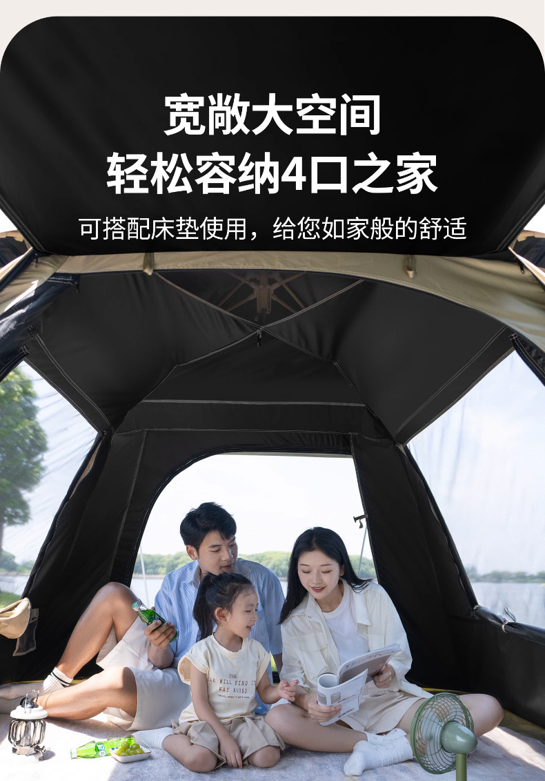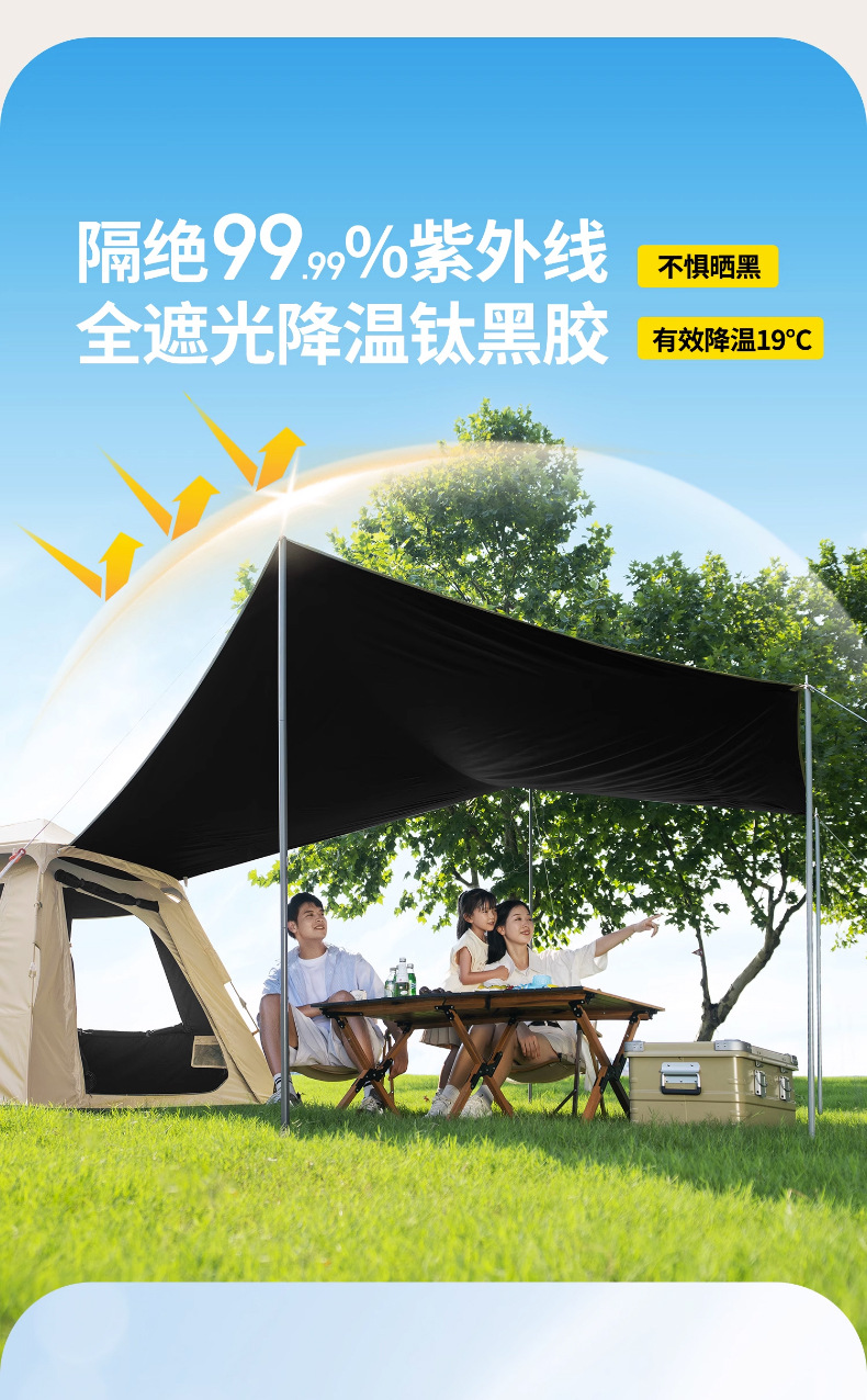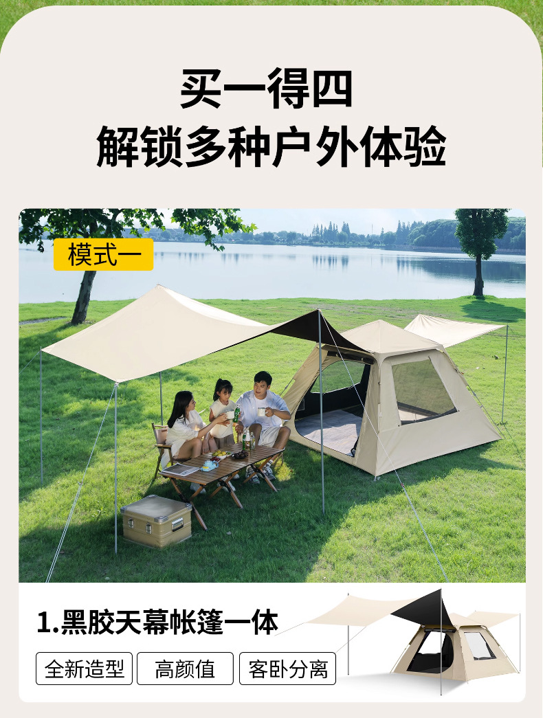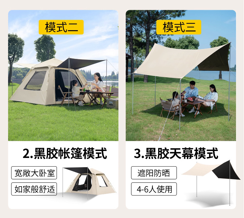 黑胶帐篷天幕二合一防雨露营装备折叠便携式一体自动速开户外野餐