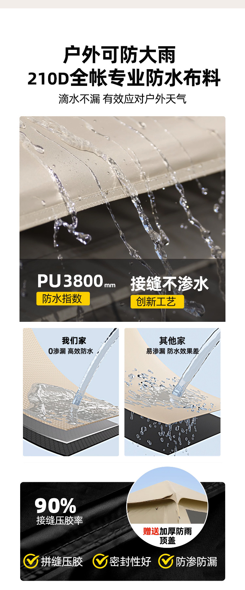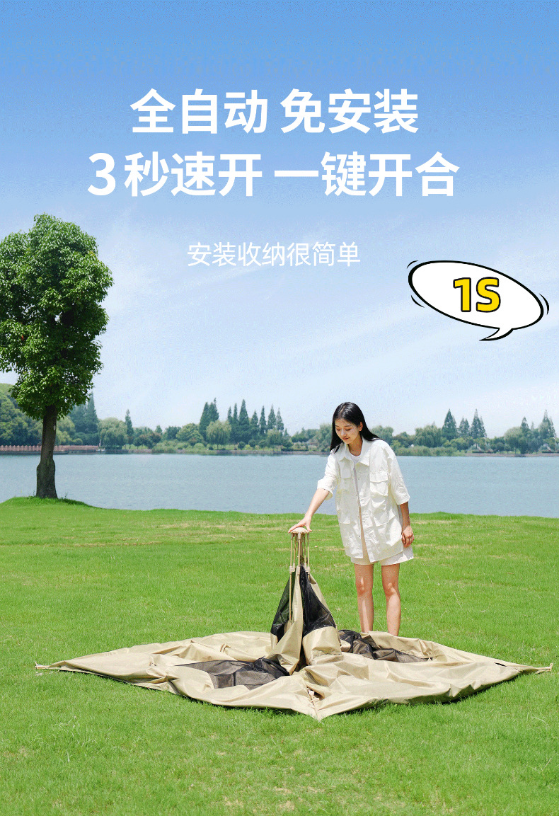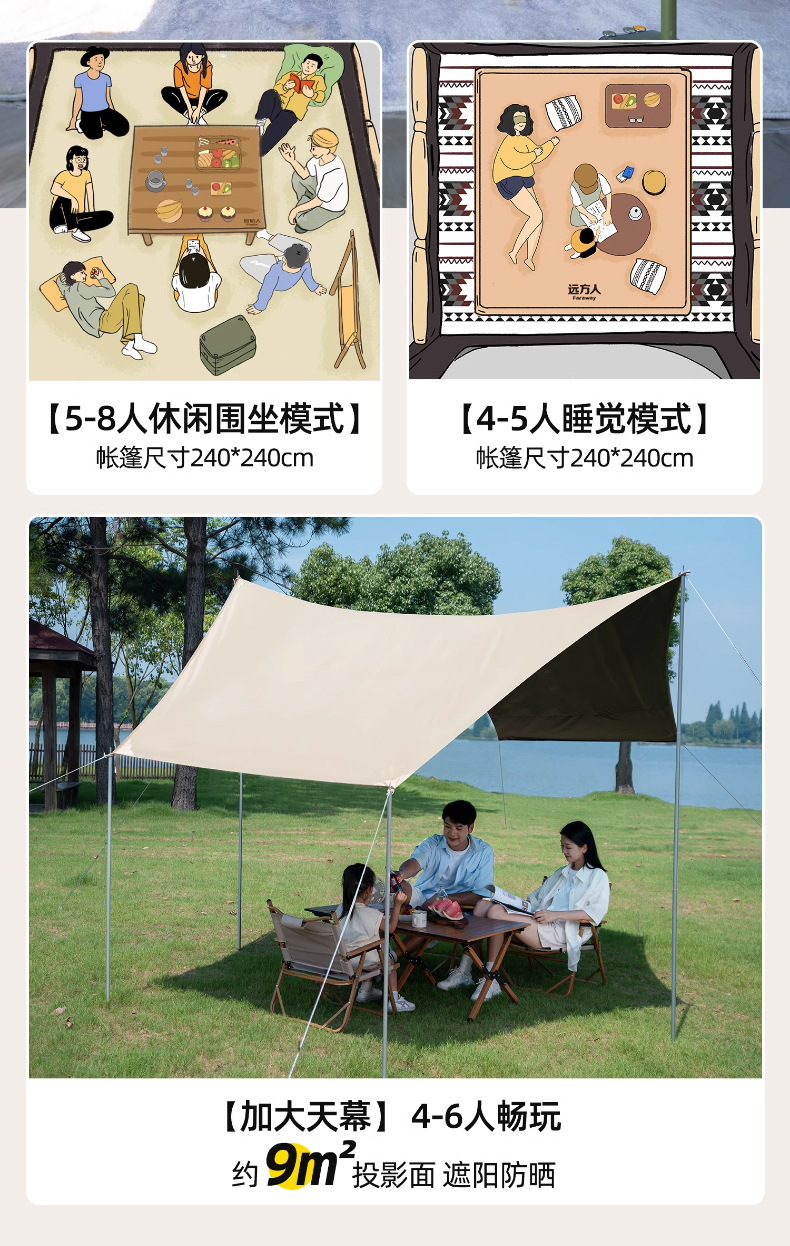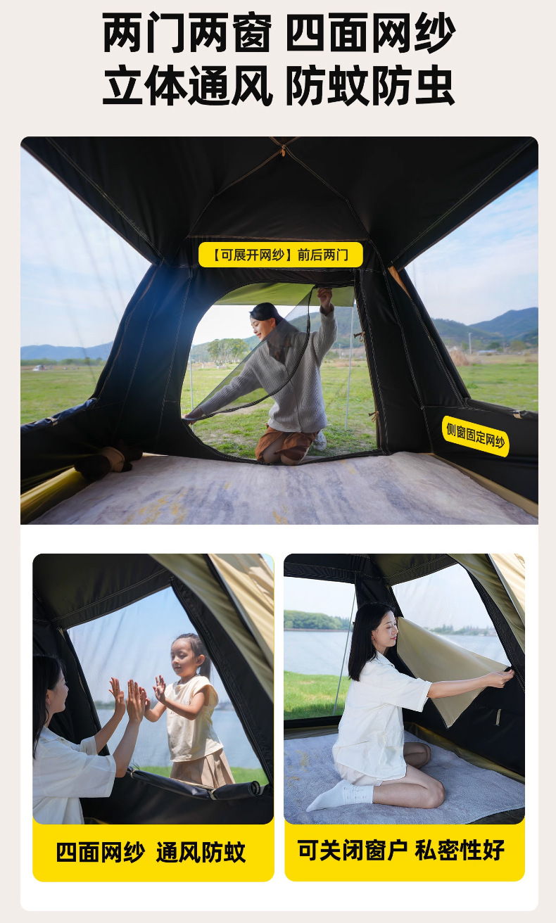 黑胶帐篷天幕二合一防雨露营装备折叠便携式一体自动速开户外野餐