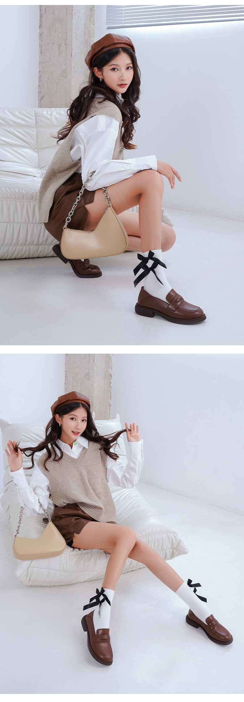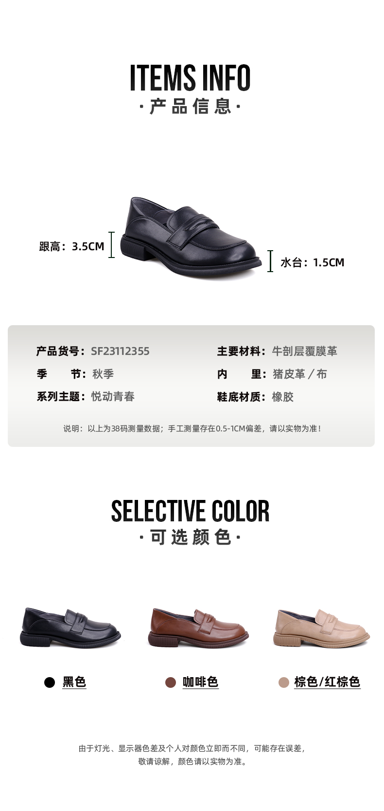 Safiya/索菲娅 2022秋季新品乐福鞋复古英伦风哑光软牛皮舒适JK小皮鞋 SF23112355