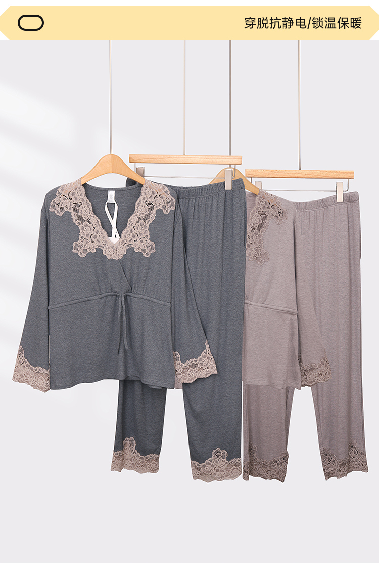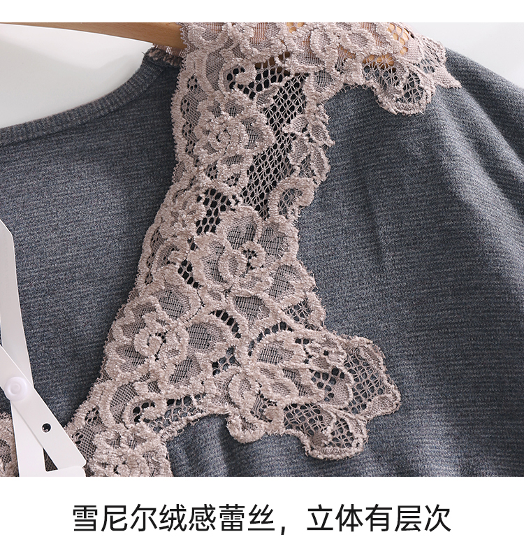 美奈川 蕾丝领蓄暖棉绒收腰套装JJ28177