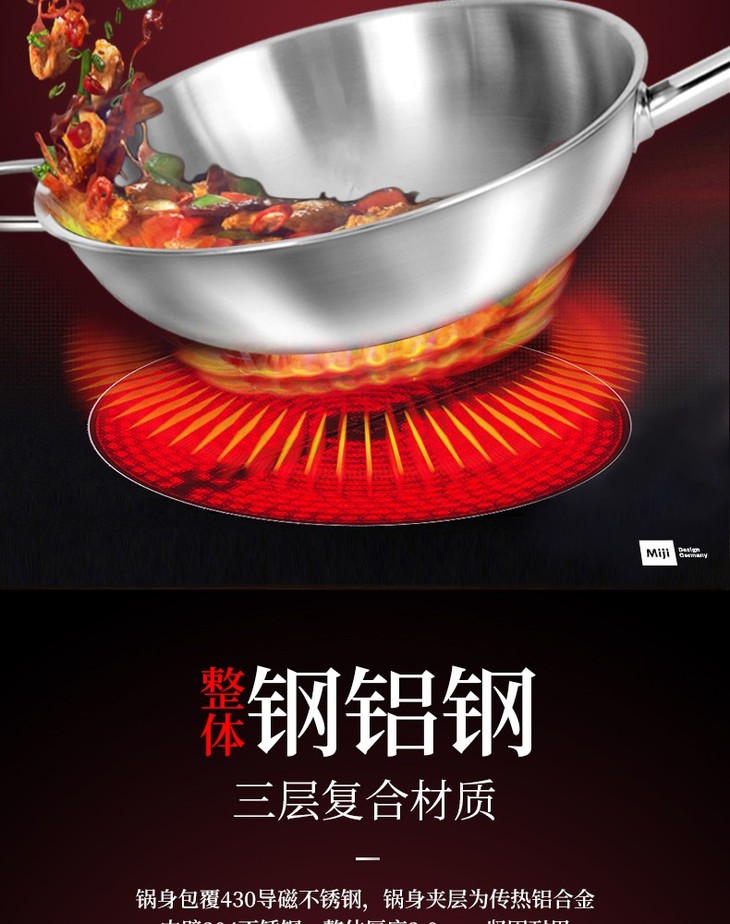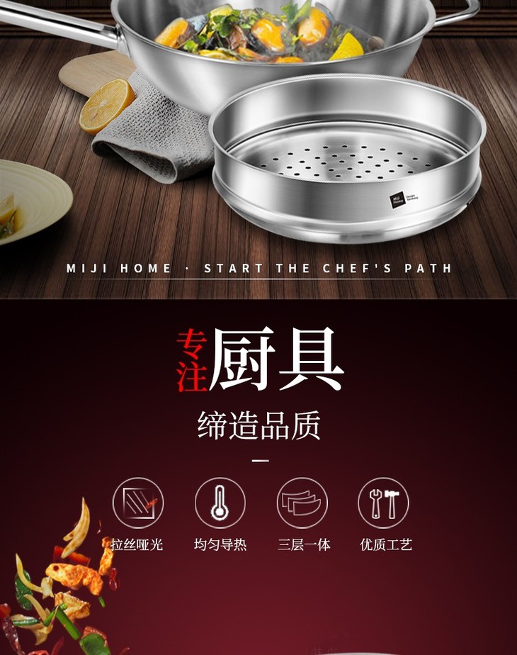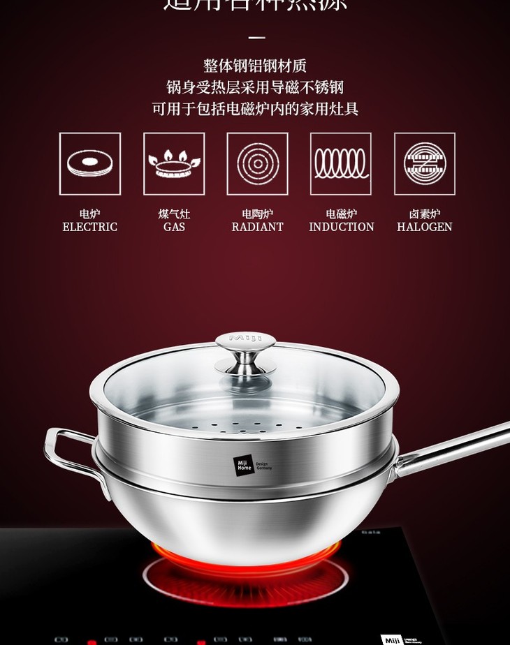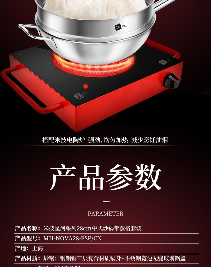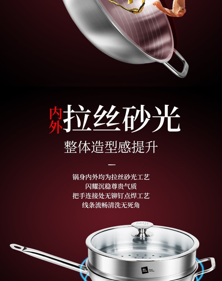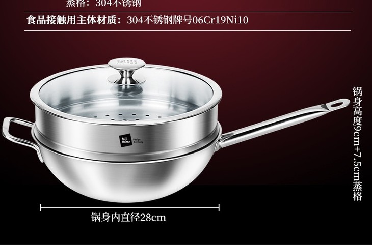 德国米技(MIJI) 星河系列 中式炒锅带蒸格套装 28CM MH-NOVA28-FSP/CN