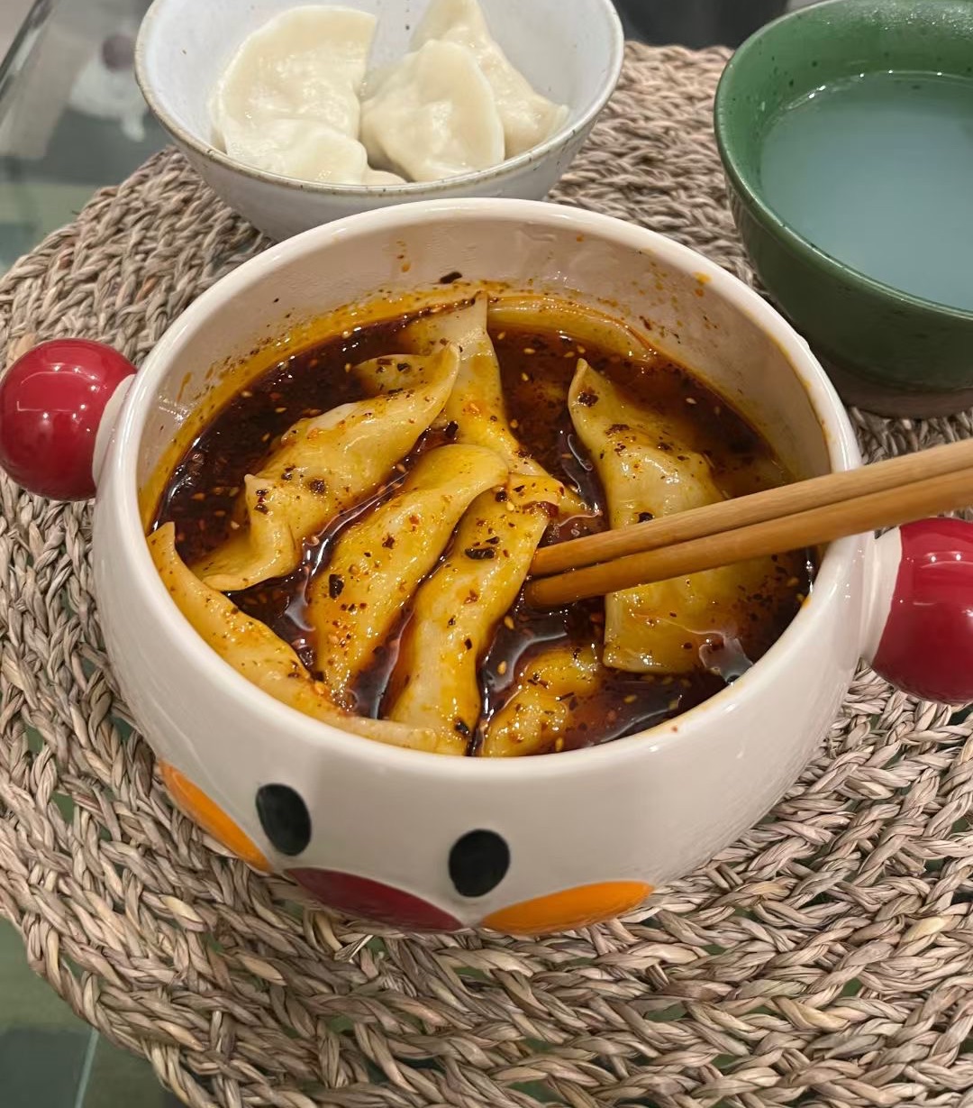 一碗简单的水饺加上豆豉酱