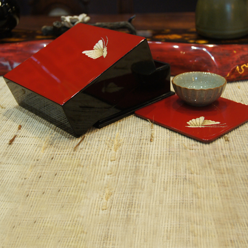 【梵谷漆器】漆器彩绘杯垫(红蝴蝶/红蝴蝶)