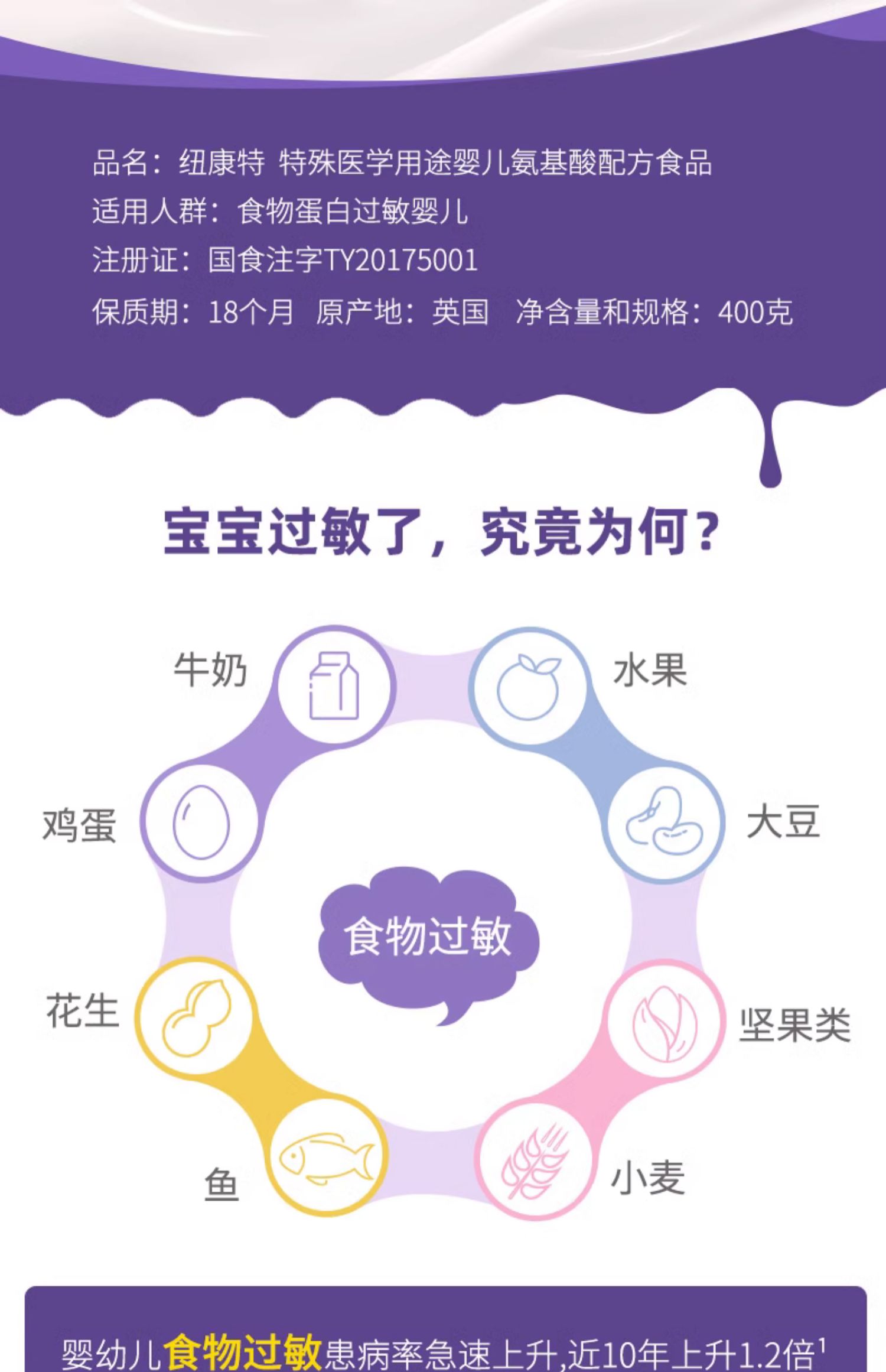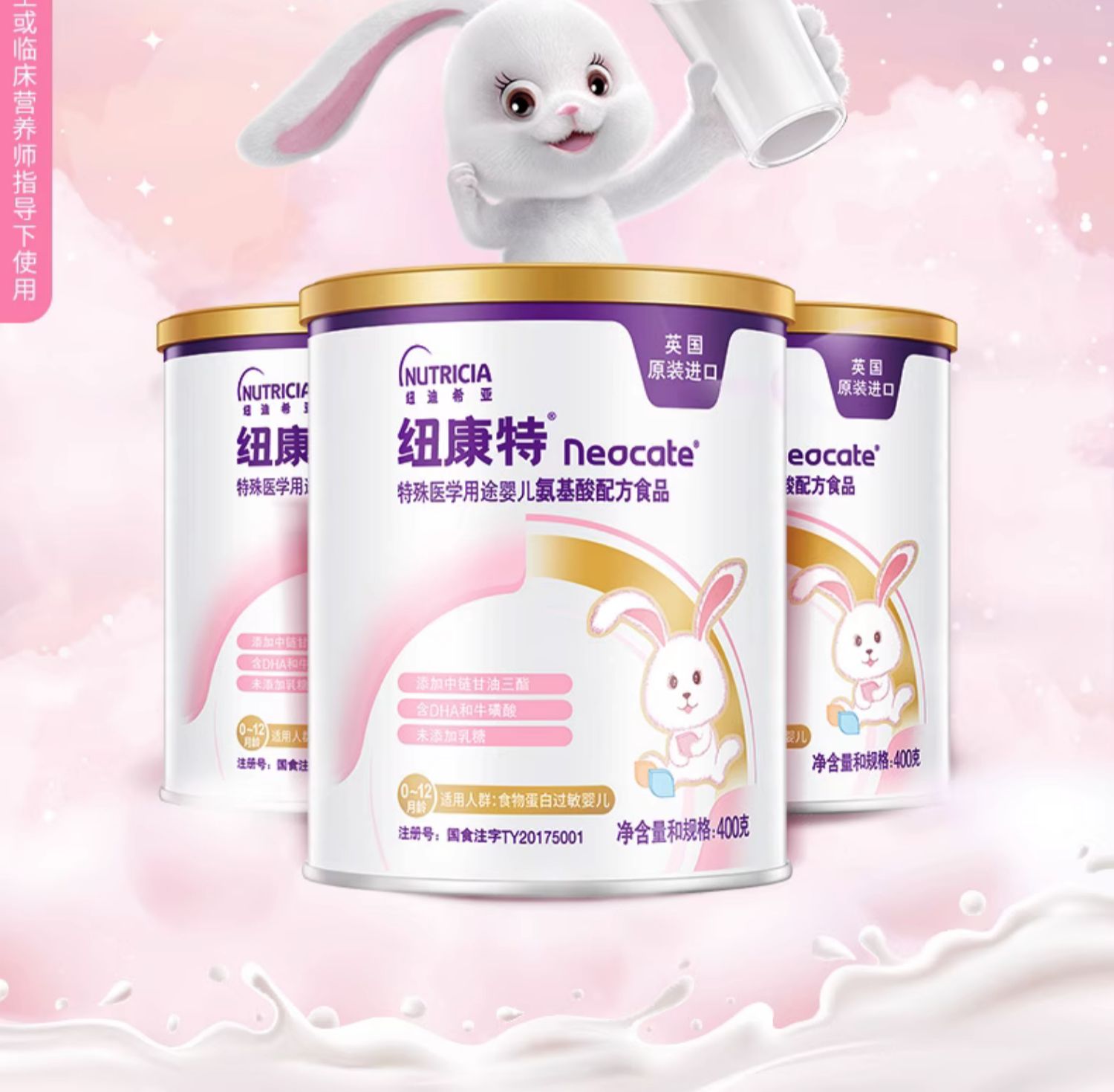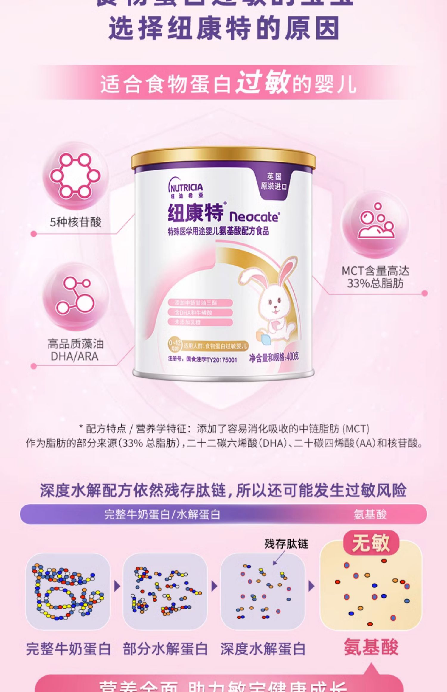 纽康特氨基酸配方粉无乳糖食物蛋白过敏婴儿配方粉400g非深度水解-NKT-658002
