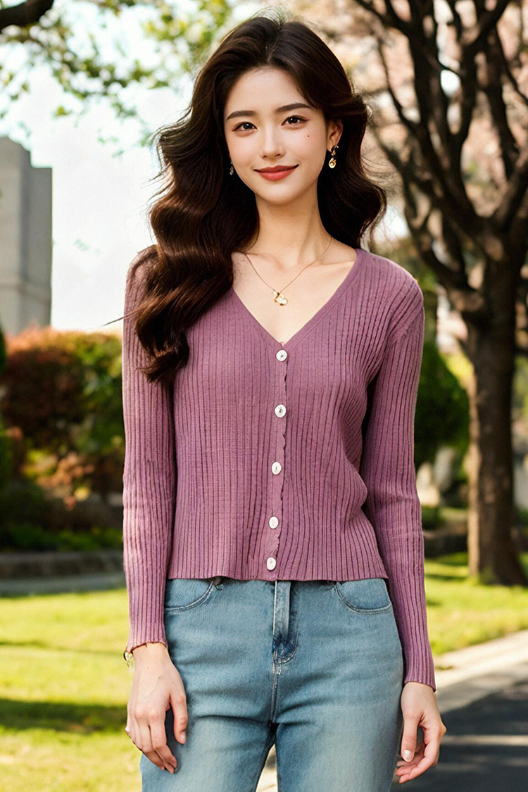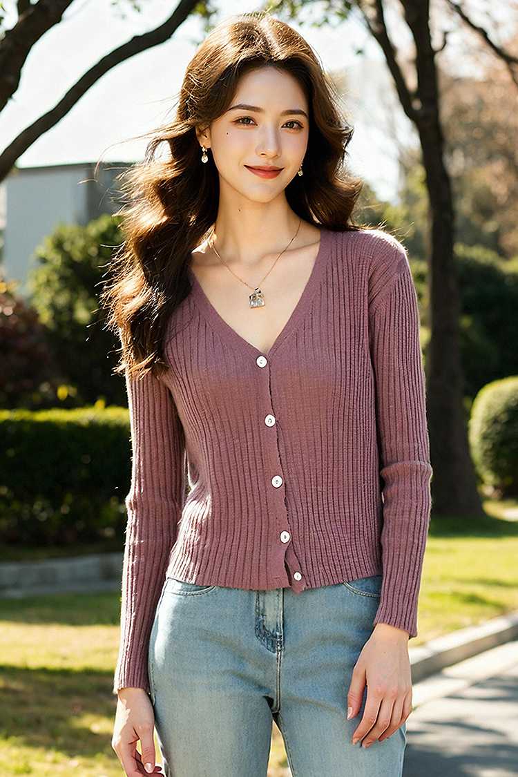奢姿大码女装2025夏季气质v领长袖针织开衫胖妹妹时尚减龄外套9851353249A