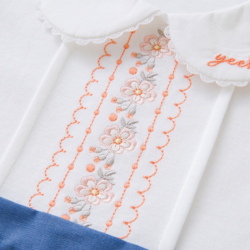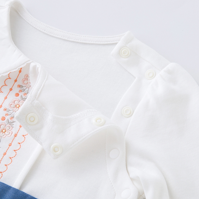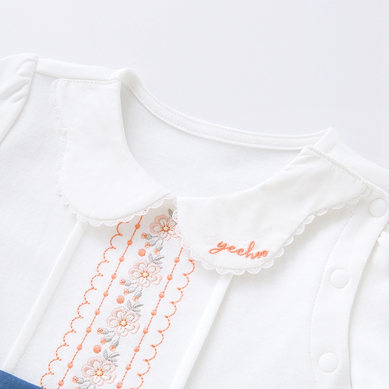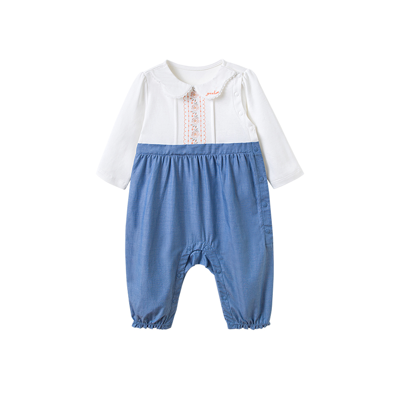 英氏婴儿连体衣秋装2022新款女宝纯棉按扣假两件哈衣YRHAJ32114A