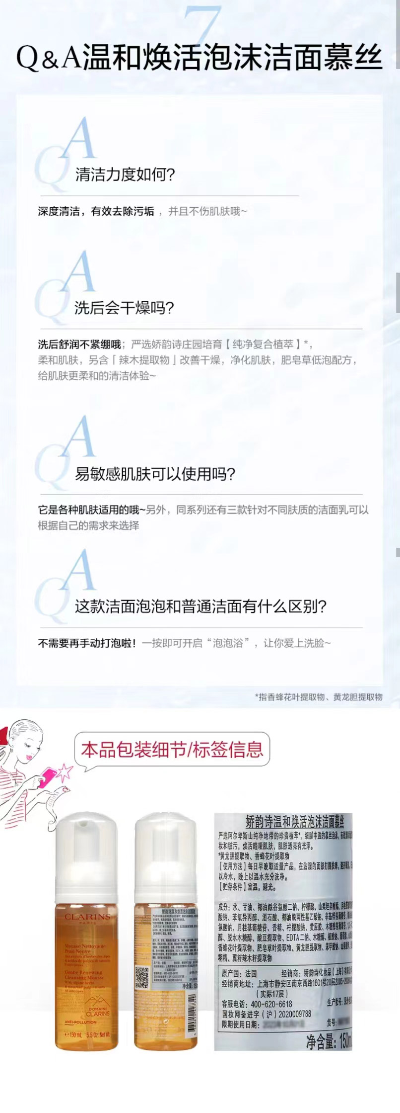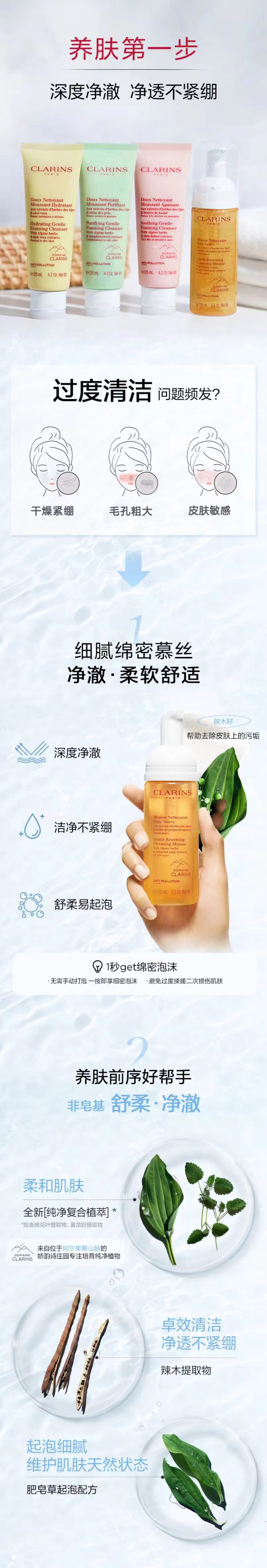娇韵诗洗面奶温和焕活泡沫洁面慕丝150ml