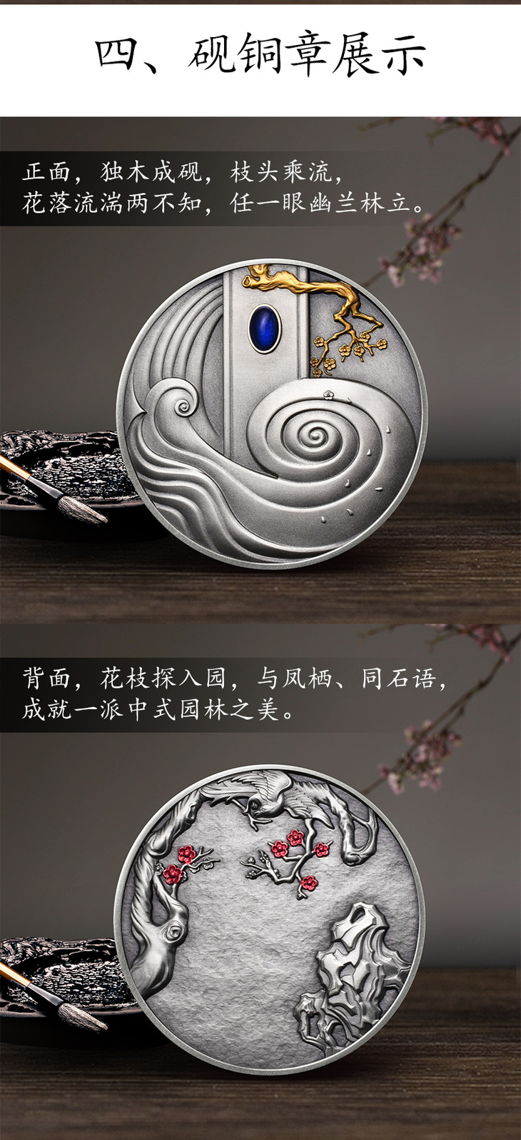 文房四宝 笔墨纸砚铜古银纪念章 满分评级带证书