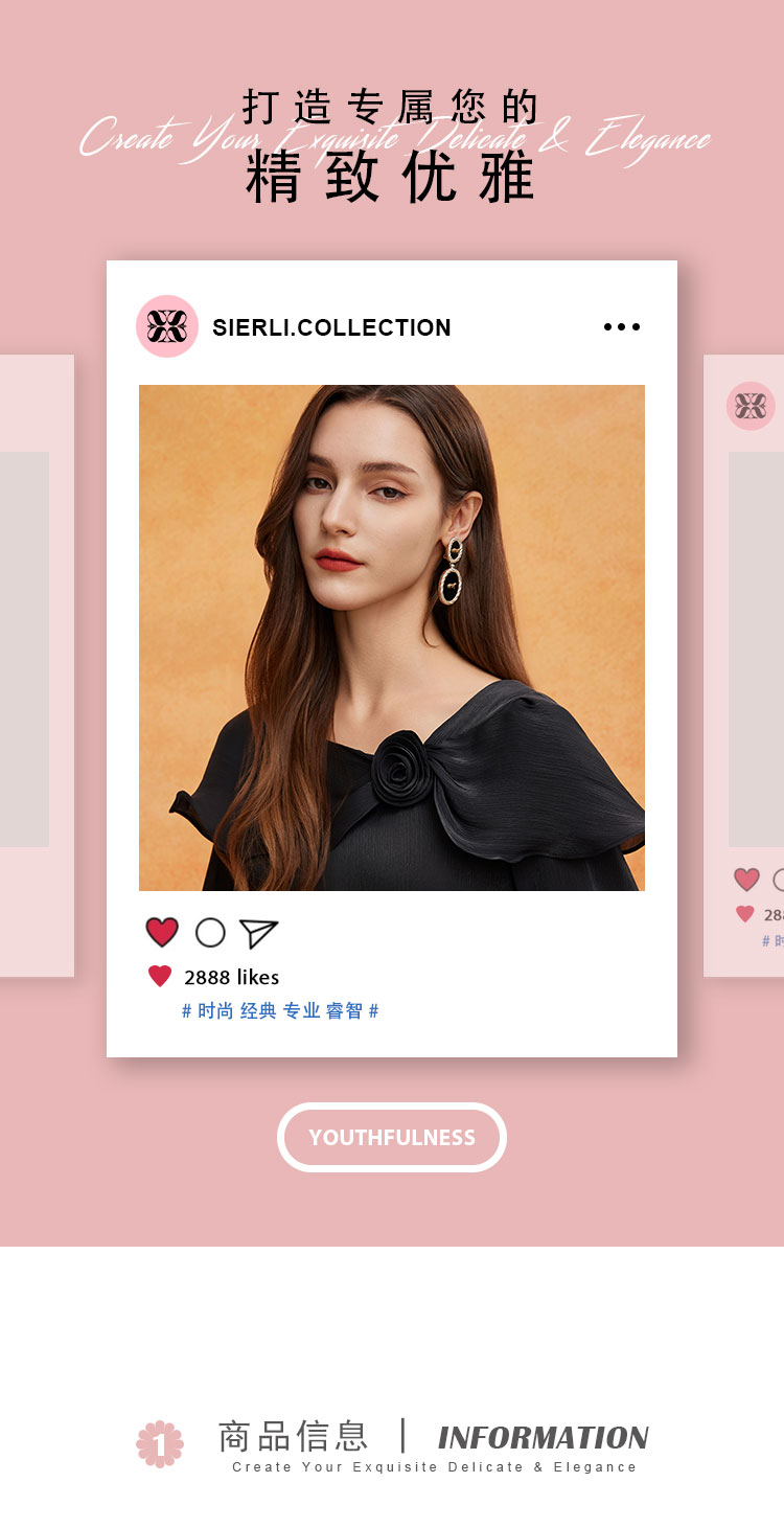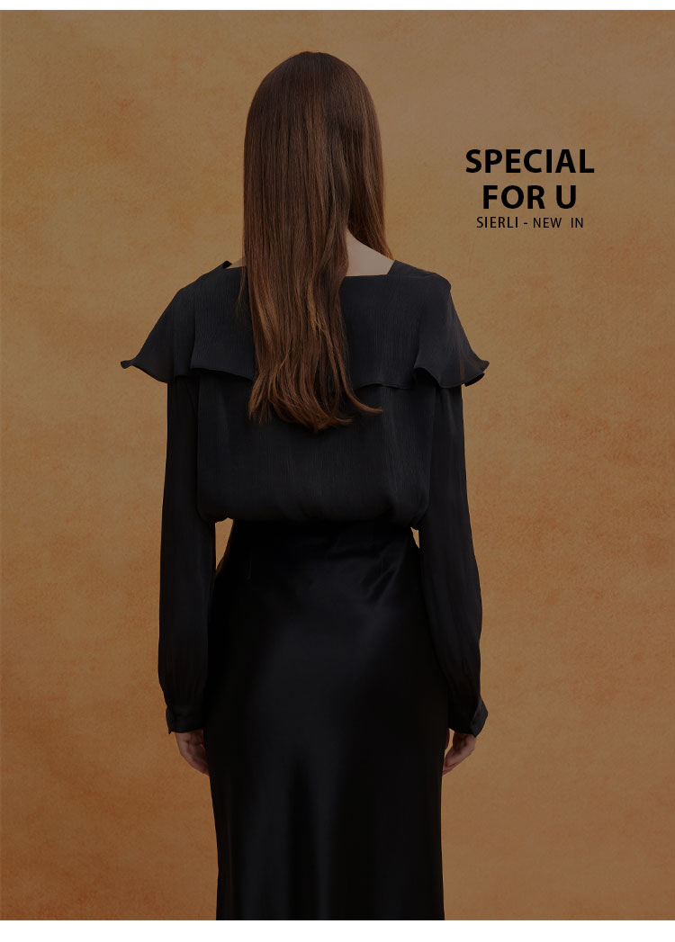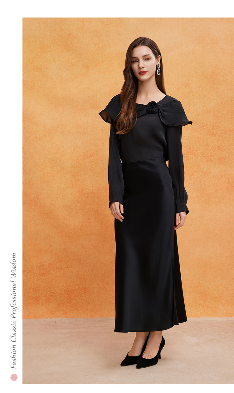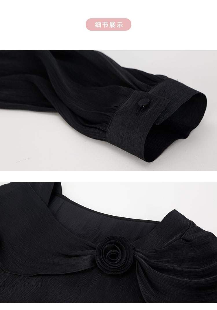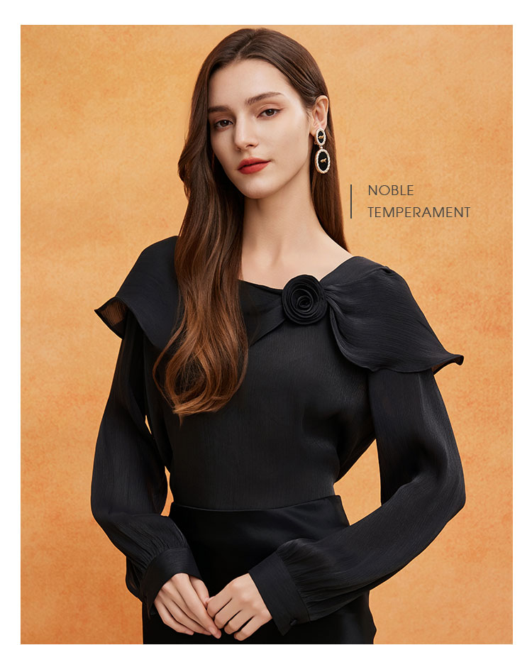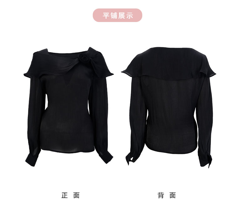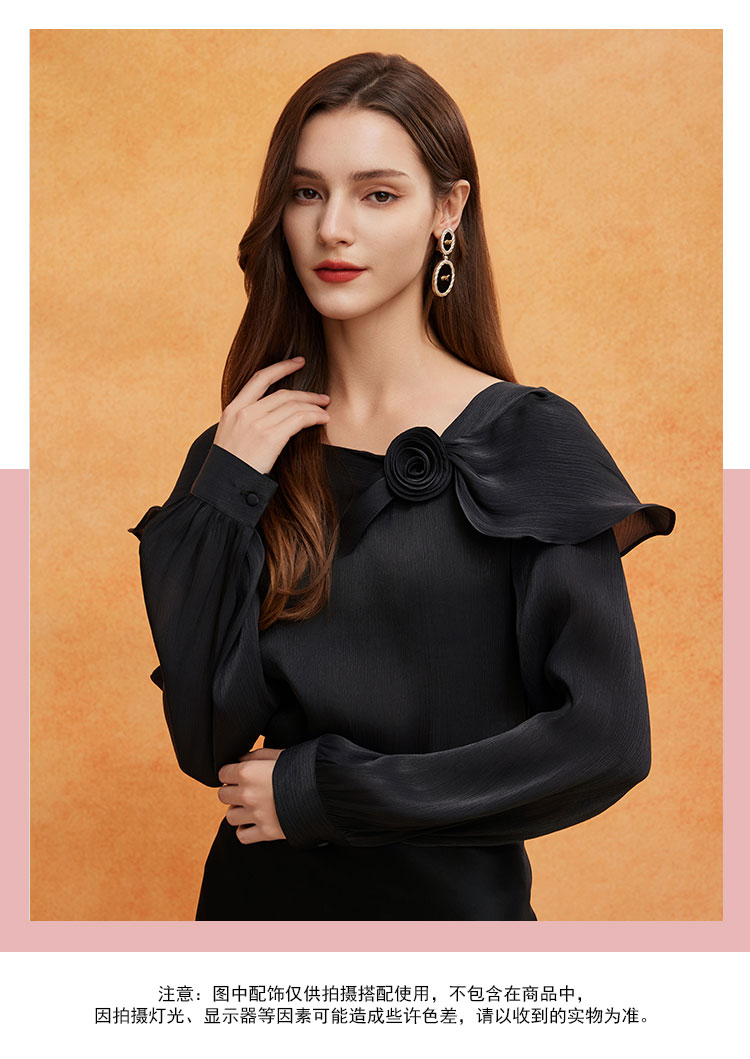 QE251斯尔丽25春季新款流水感材质荷叶边大领手工立体玫瑰盘花上衣