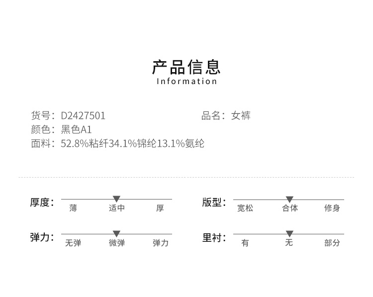 VIVIAN LIU D2427501春女装新款斜插兜显瘦直筒休闲针织长裤