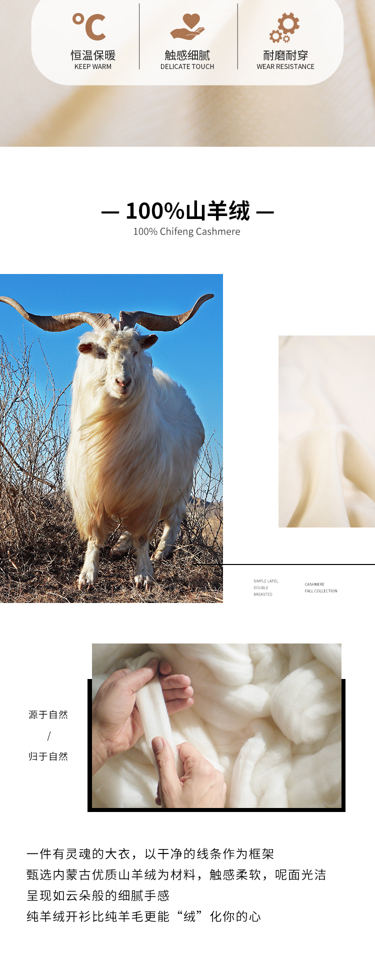 东黎羊绒是赤峰东荣集团自主品牌,自有牧场/羊绒制品全产业链优势,实现了羊绒从“牧场”到“商场”的华丽转变。