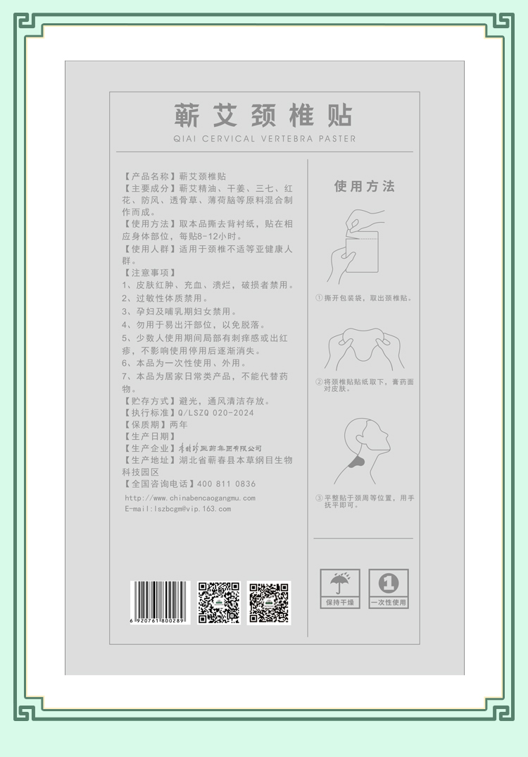 【蕲艾颈椎贴】 颈椎轻松 一贴即舒 李时珍正品~