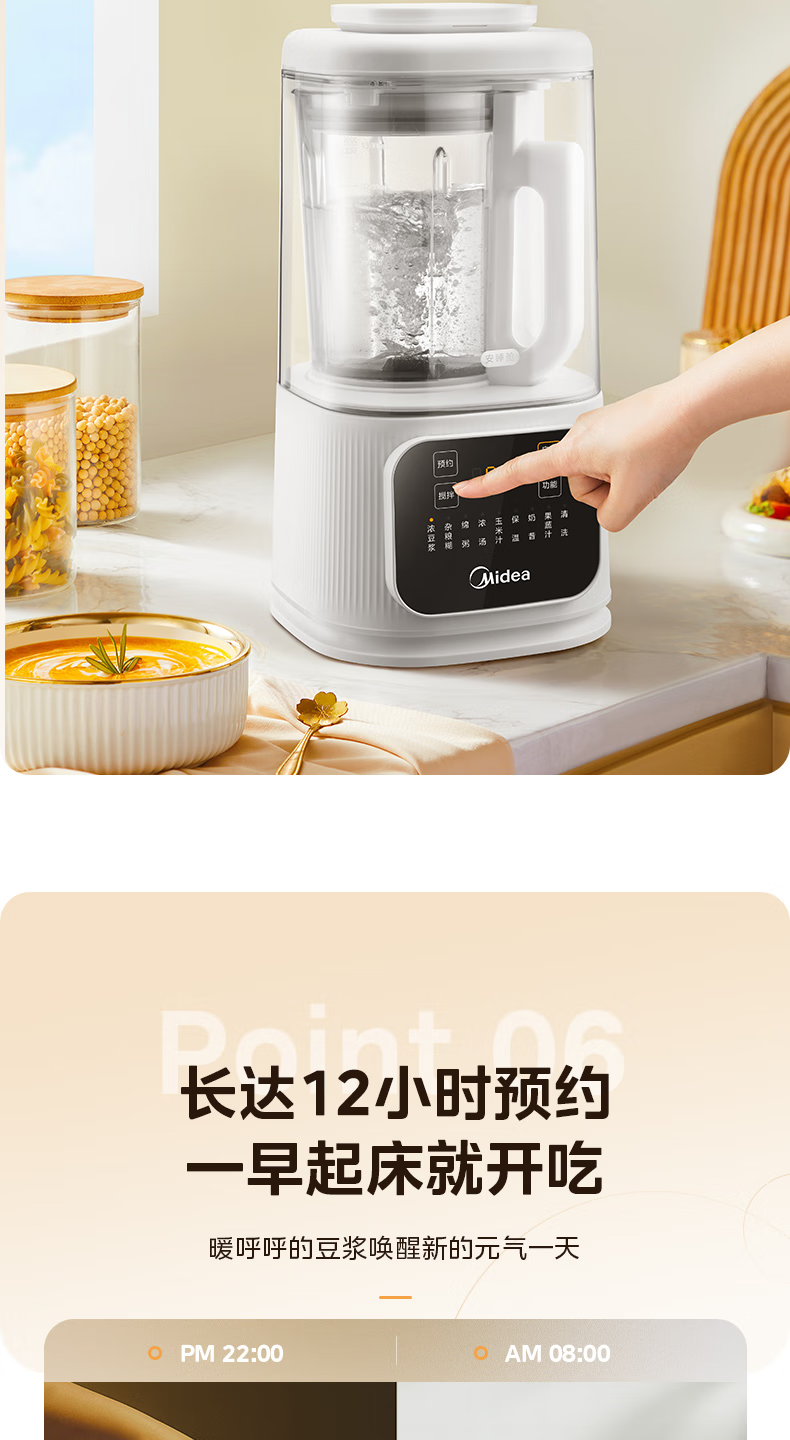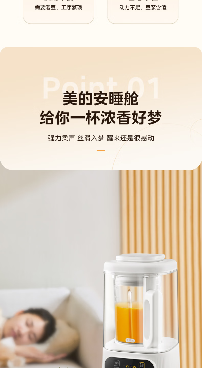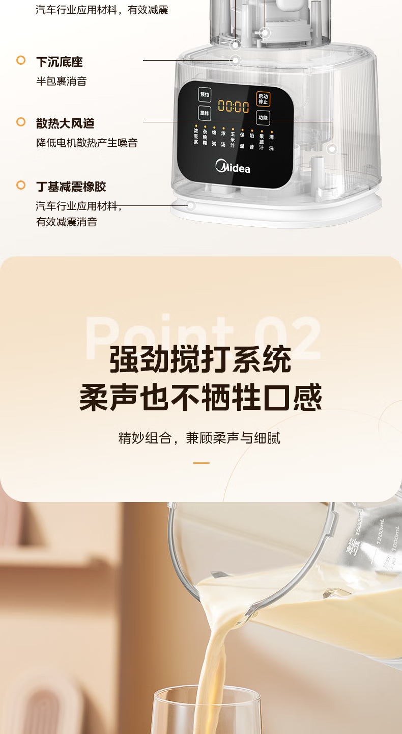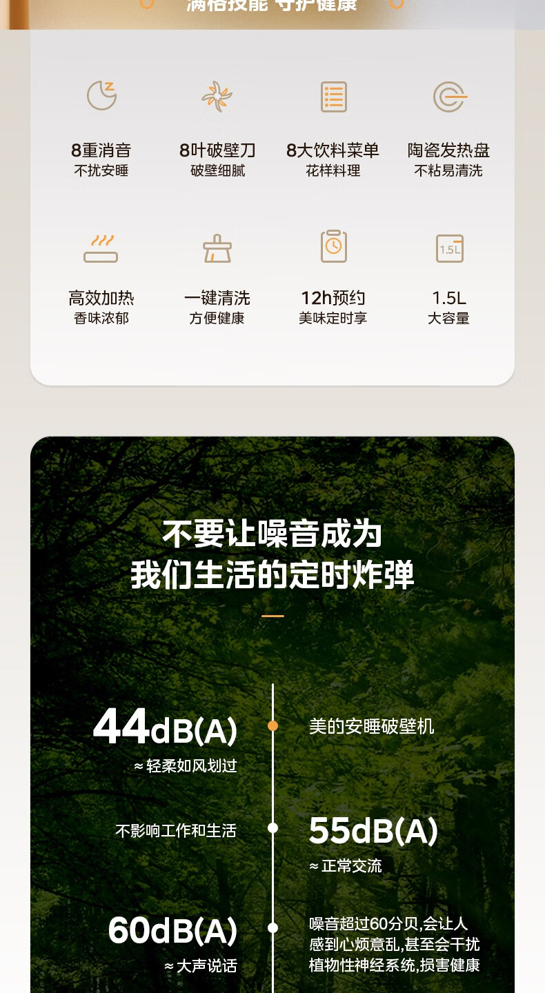 美的(Midea)安睡破壁机家用低音隔音罩降噪榨汁机婴儿辅食机智能预约豆浆机 MJ-PB40D53