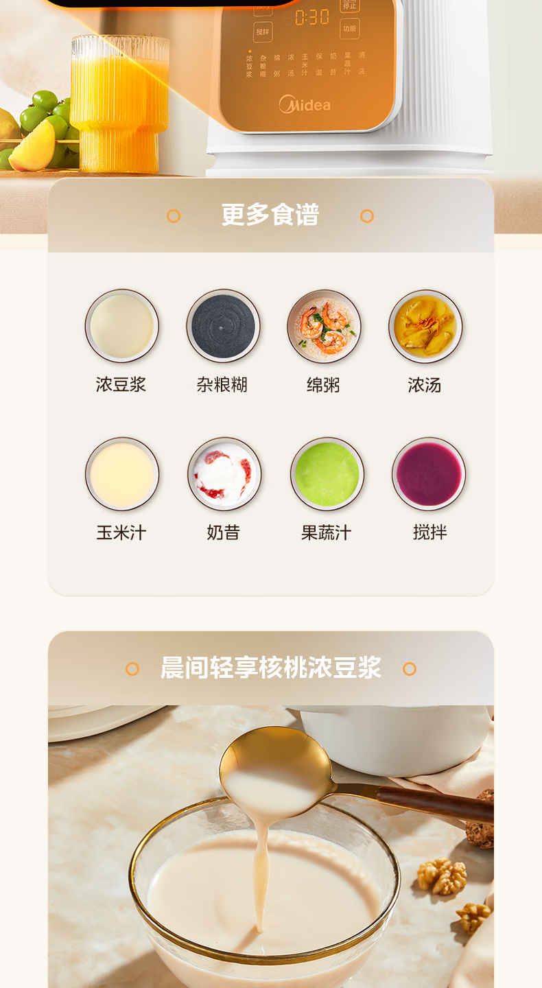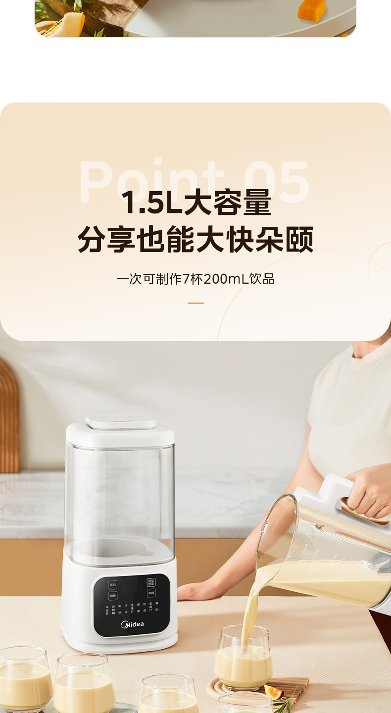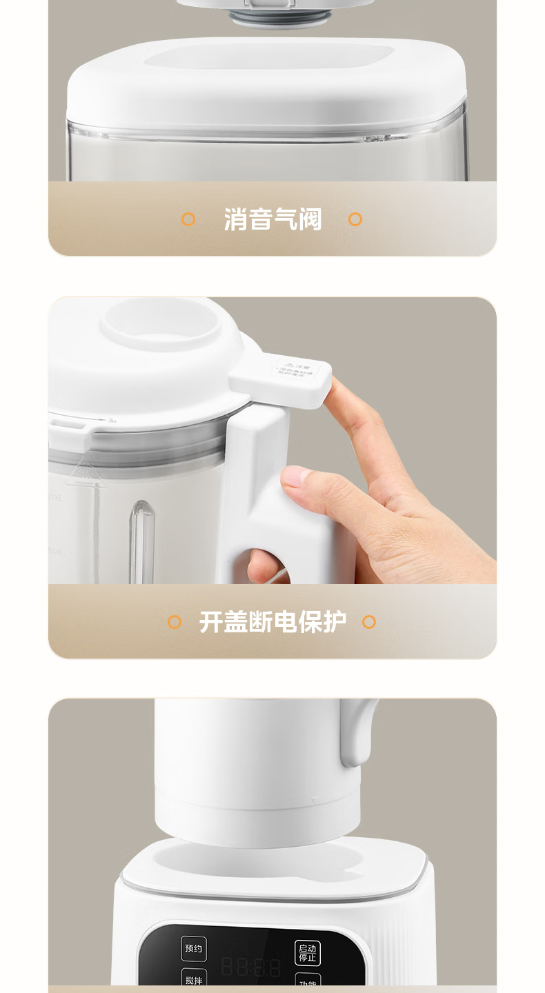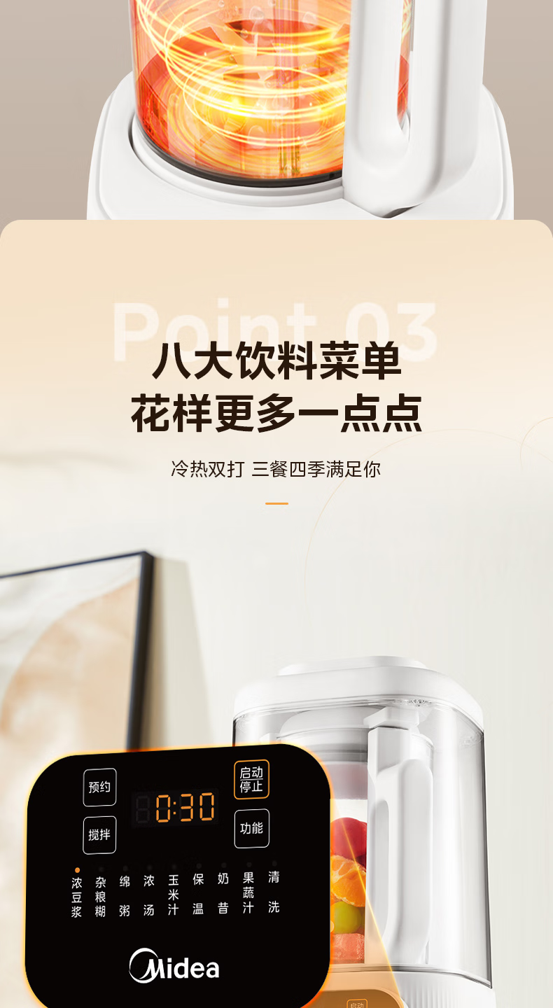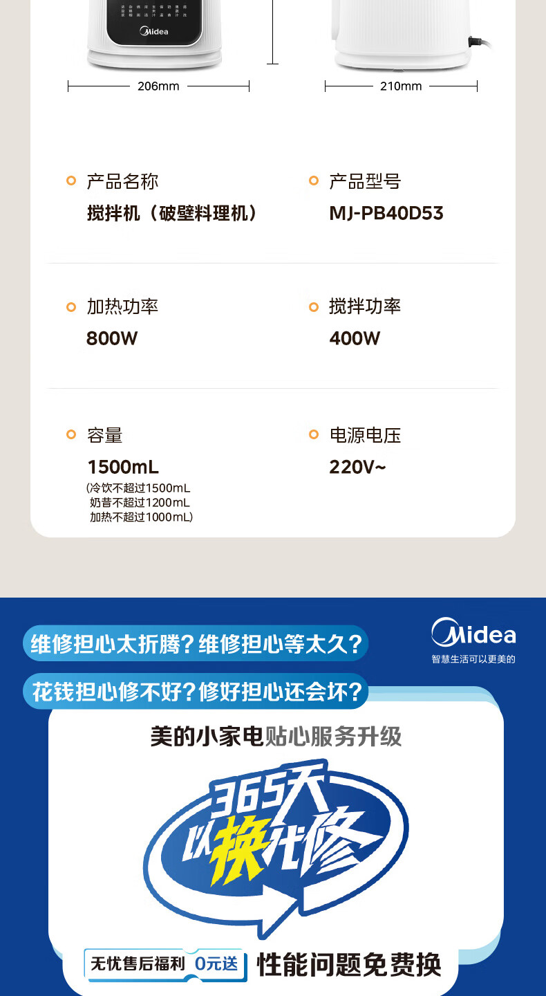 美的(Midea)安睡破壁机家用低音隔音罩降噪榨汁机婴儿辅食机智能预约豆浆机 MJ-PB40D53