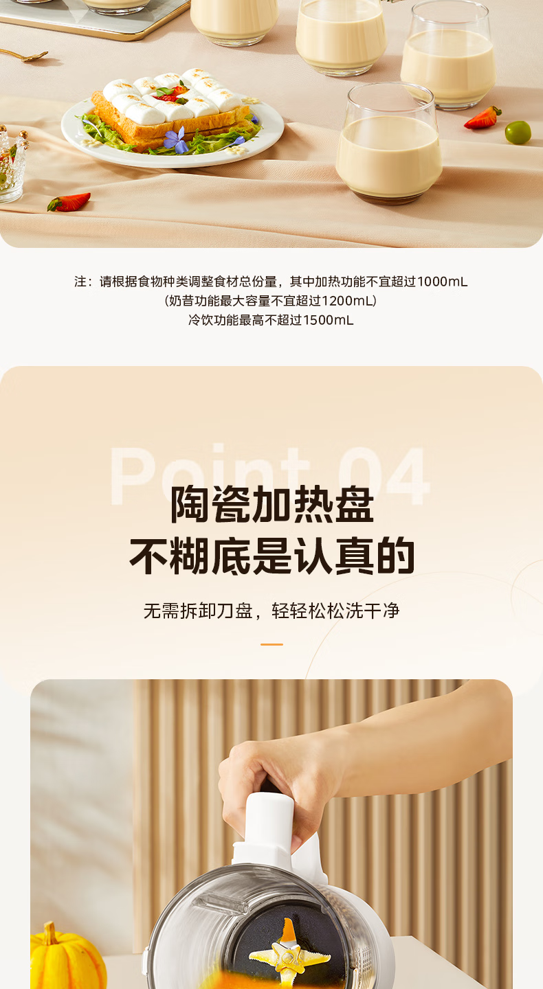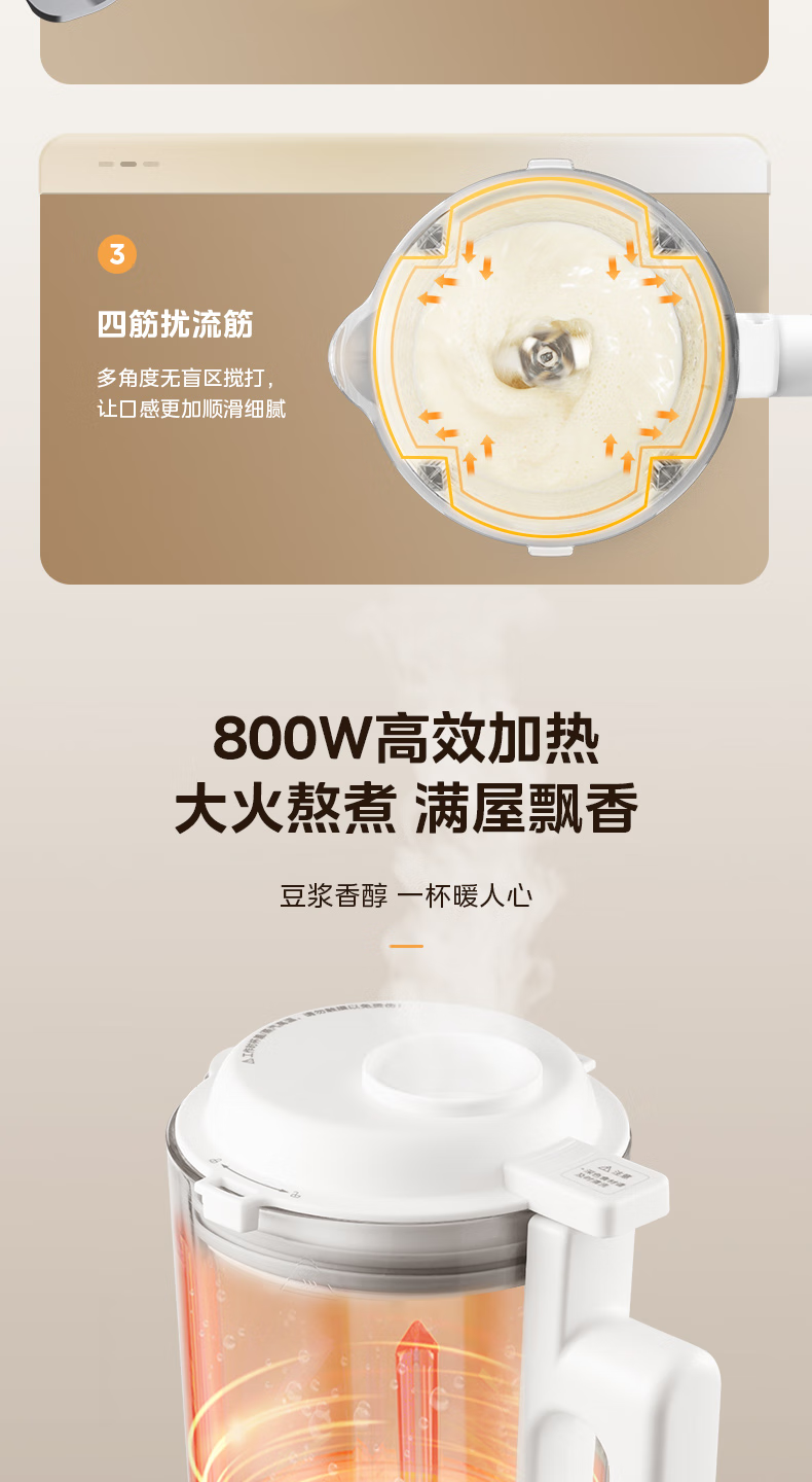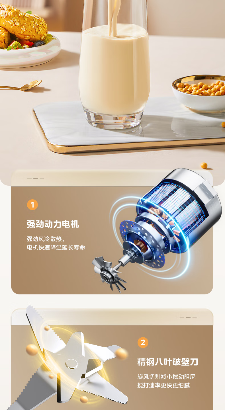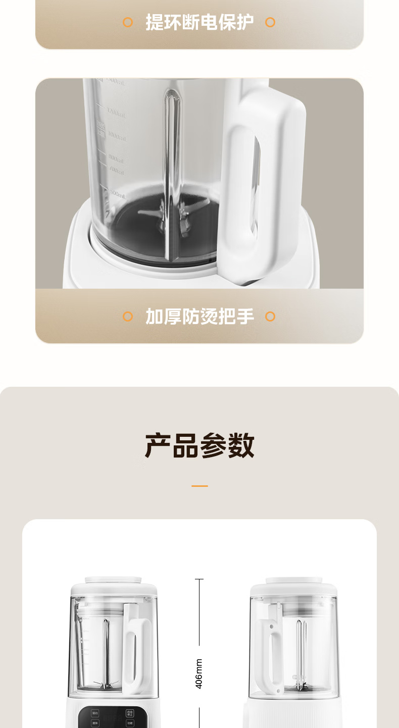 美的(Midea)安睡破壁机家用低音隔音罩降噪榨汁机婴儿辅食机智能预约豆浆机 MJ-PB40D53