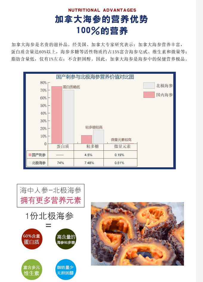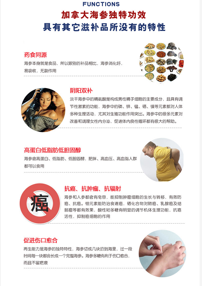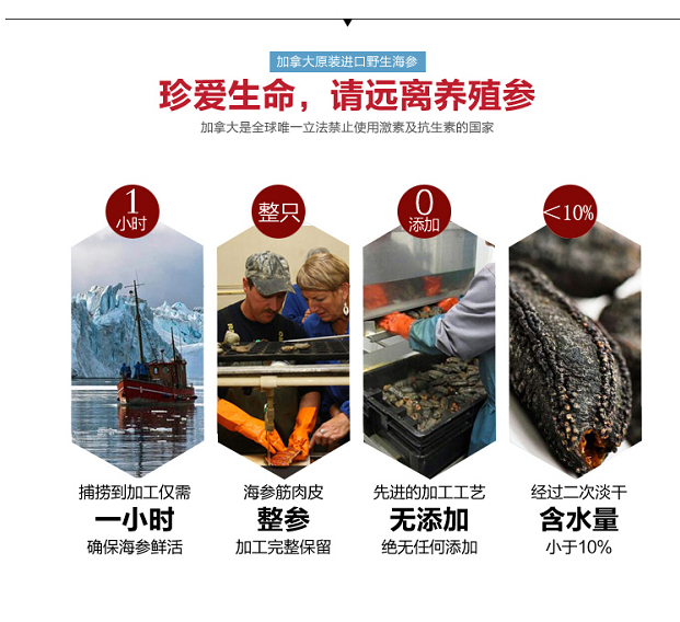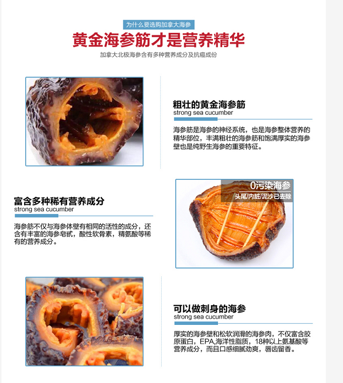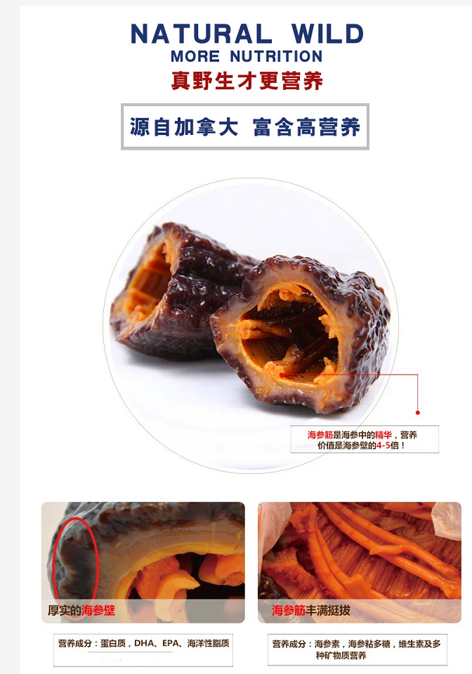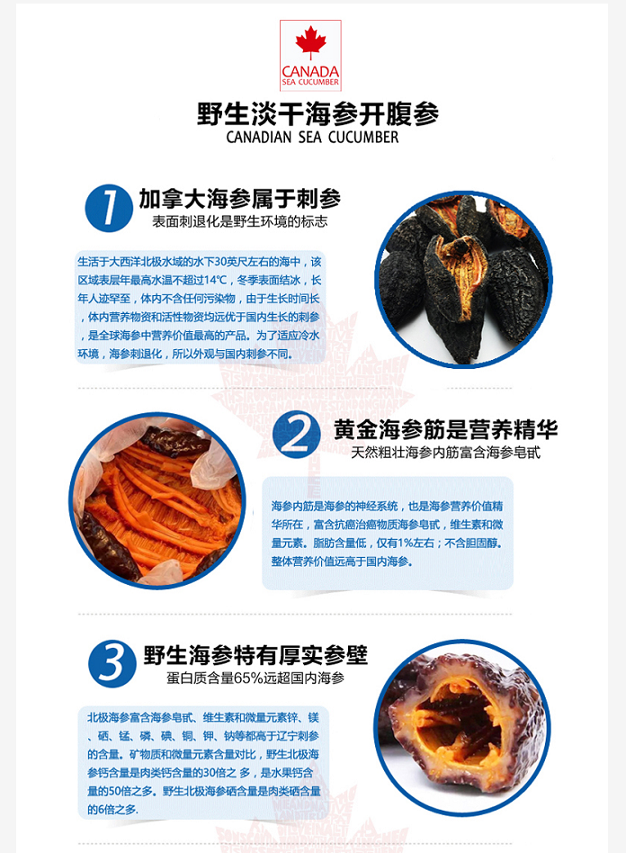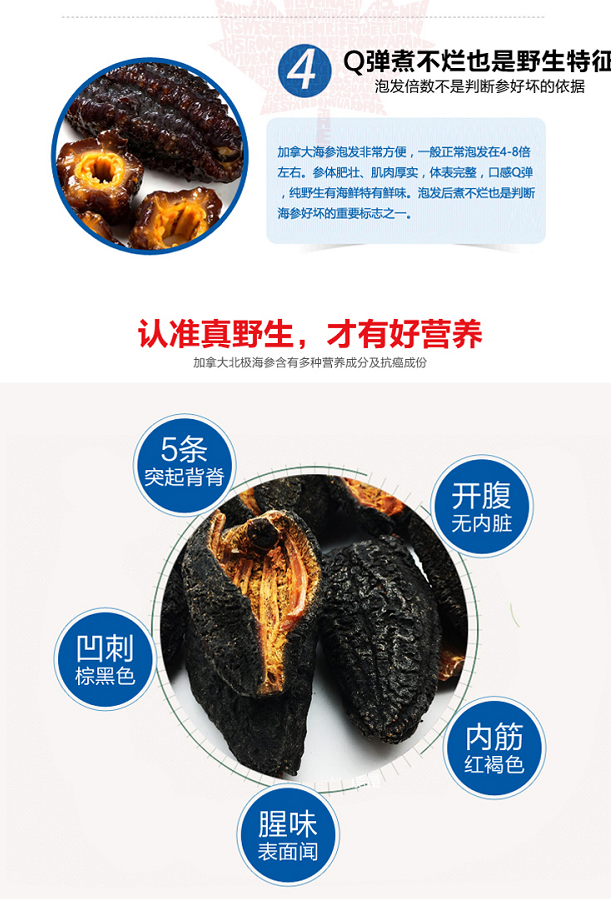 30头进口加拿大野生淡干海参454g/袋(30头等级) 4A级精品开口