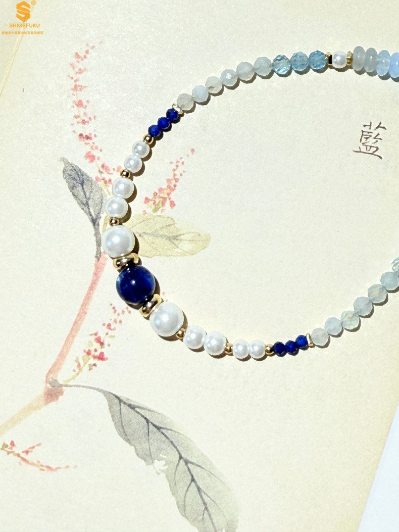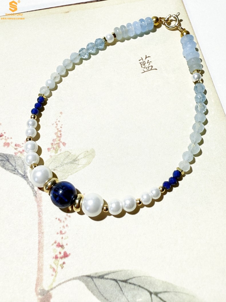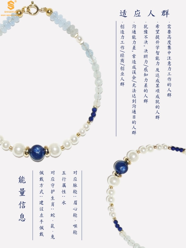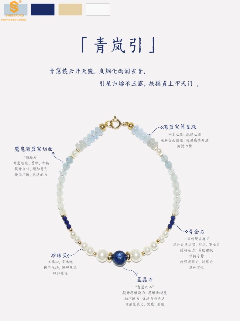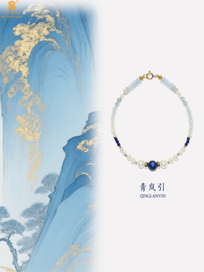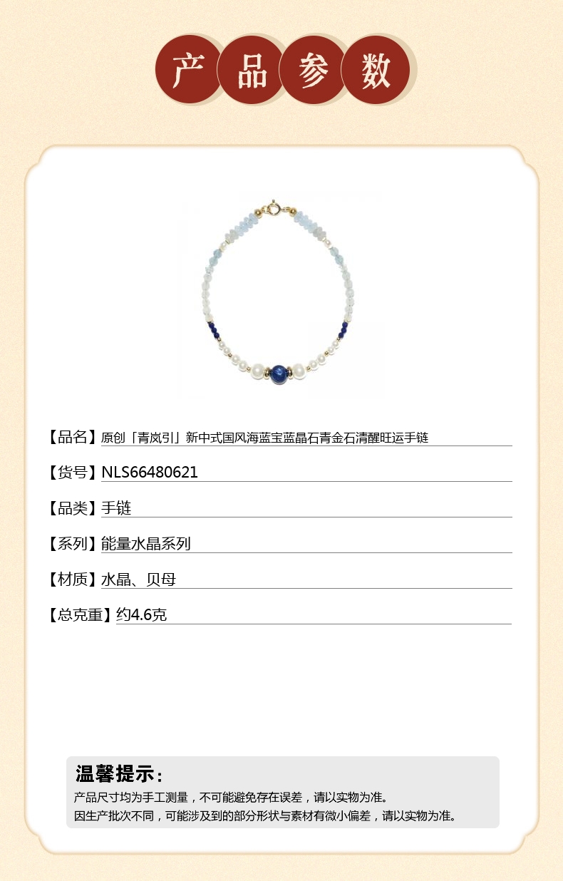 【品名】原创「青岚引」新中式国风海蓝宝蓝晶石青金石清醒旺运手链