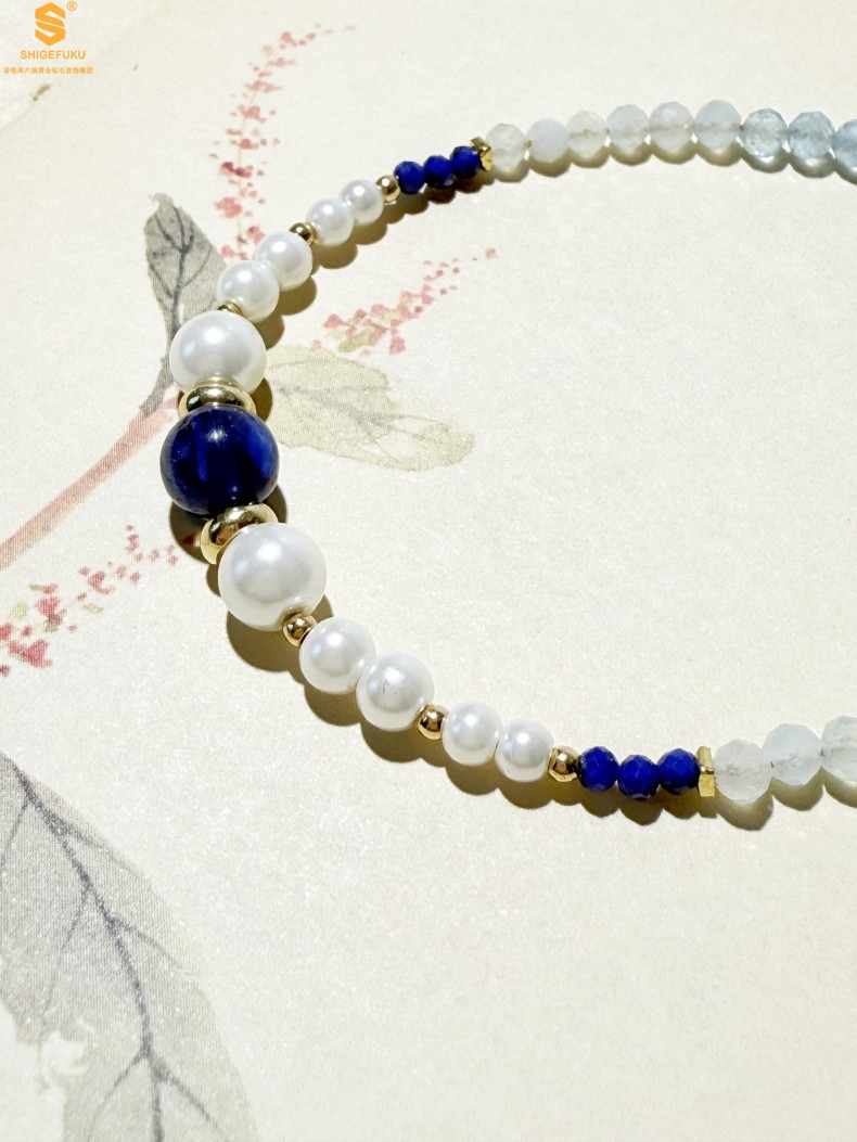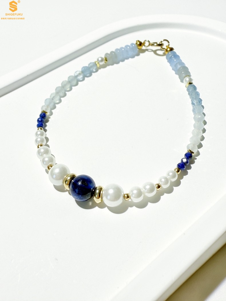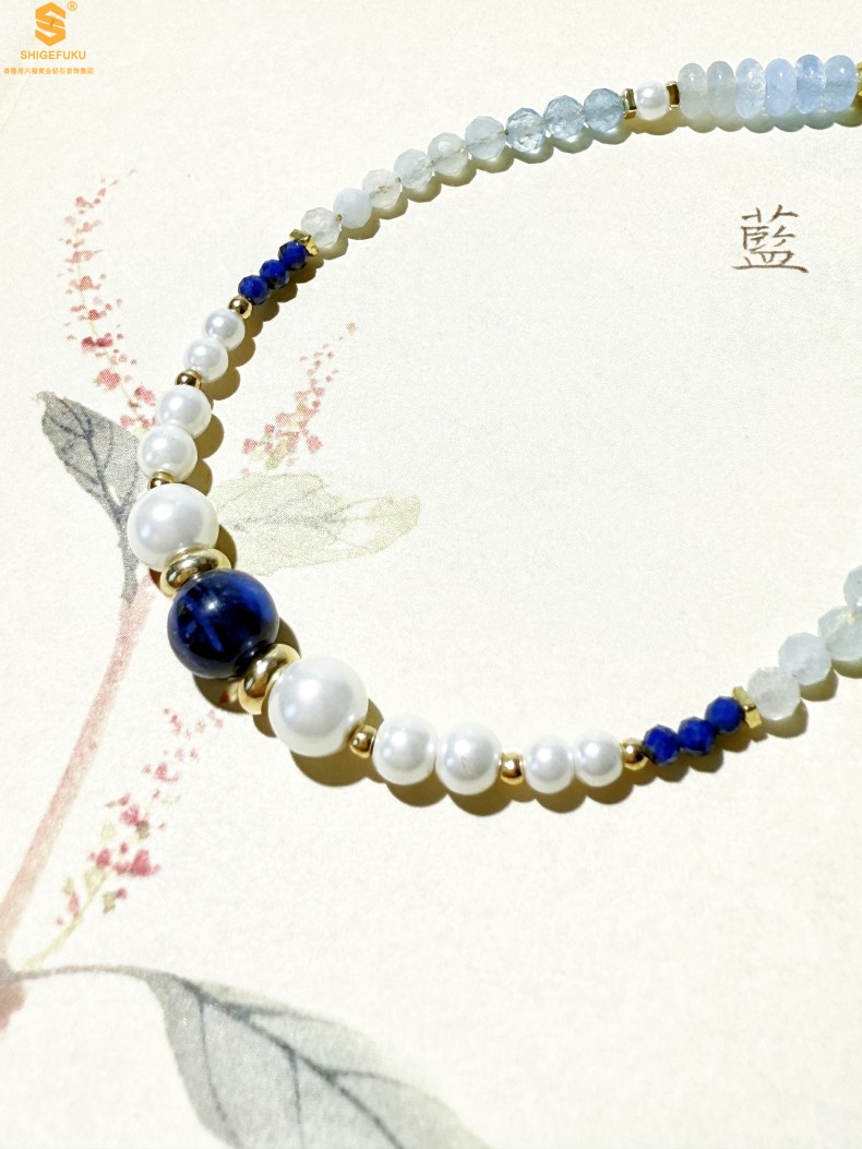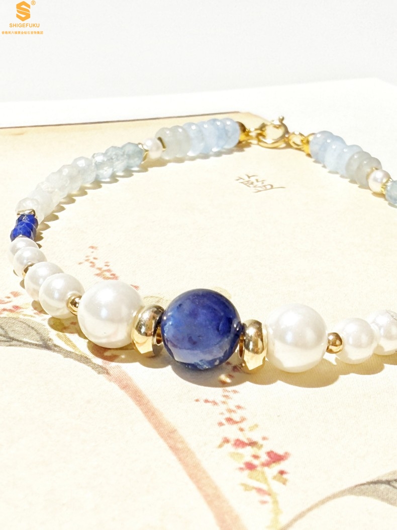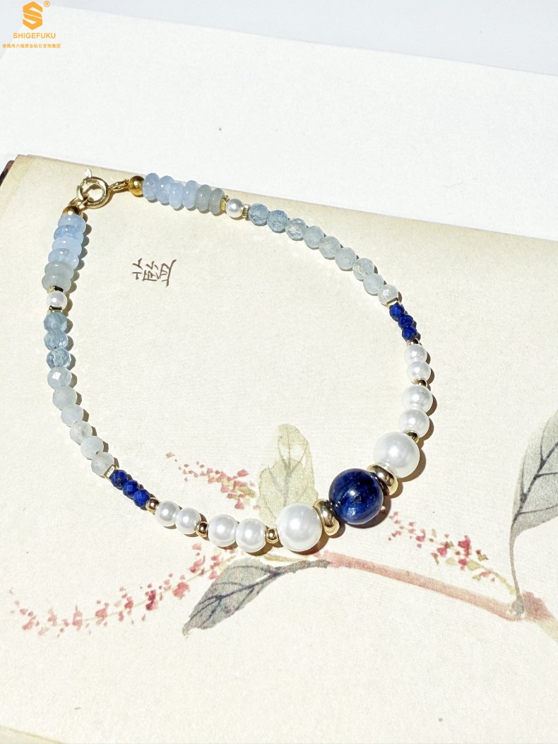 【品名】原创「青岚引」新中式国风海蓝宝蓝晶石青金石清醒旺运手链