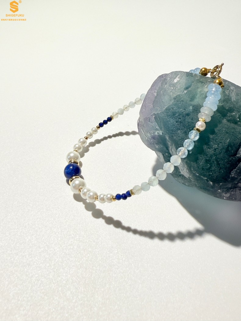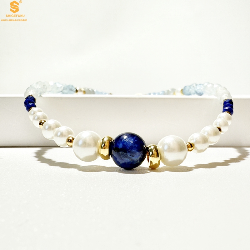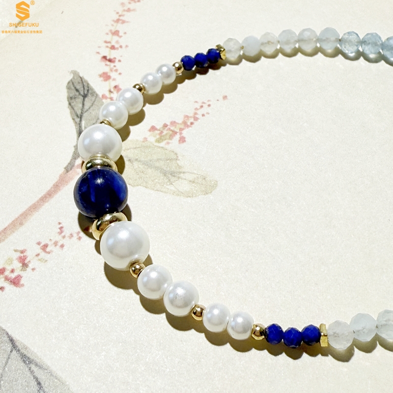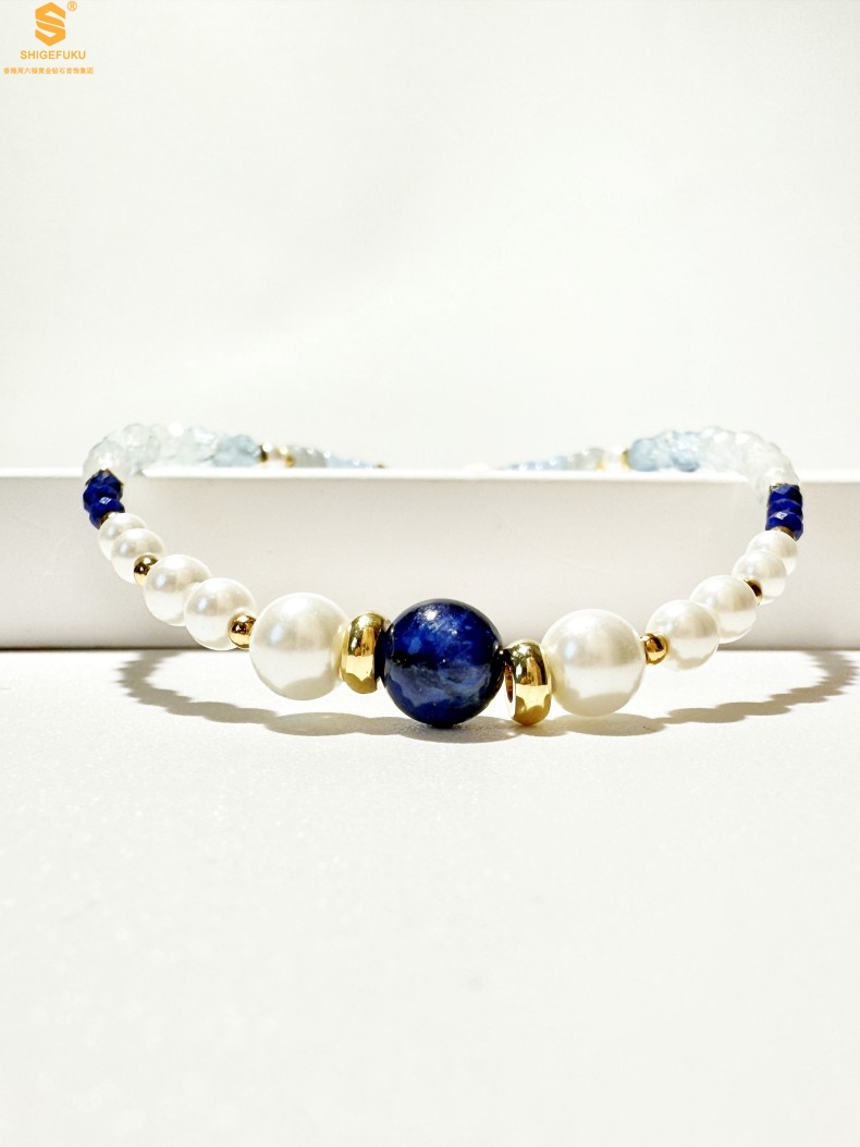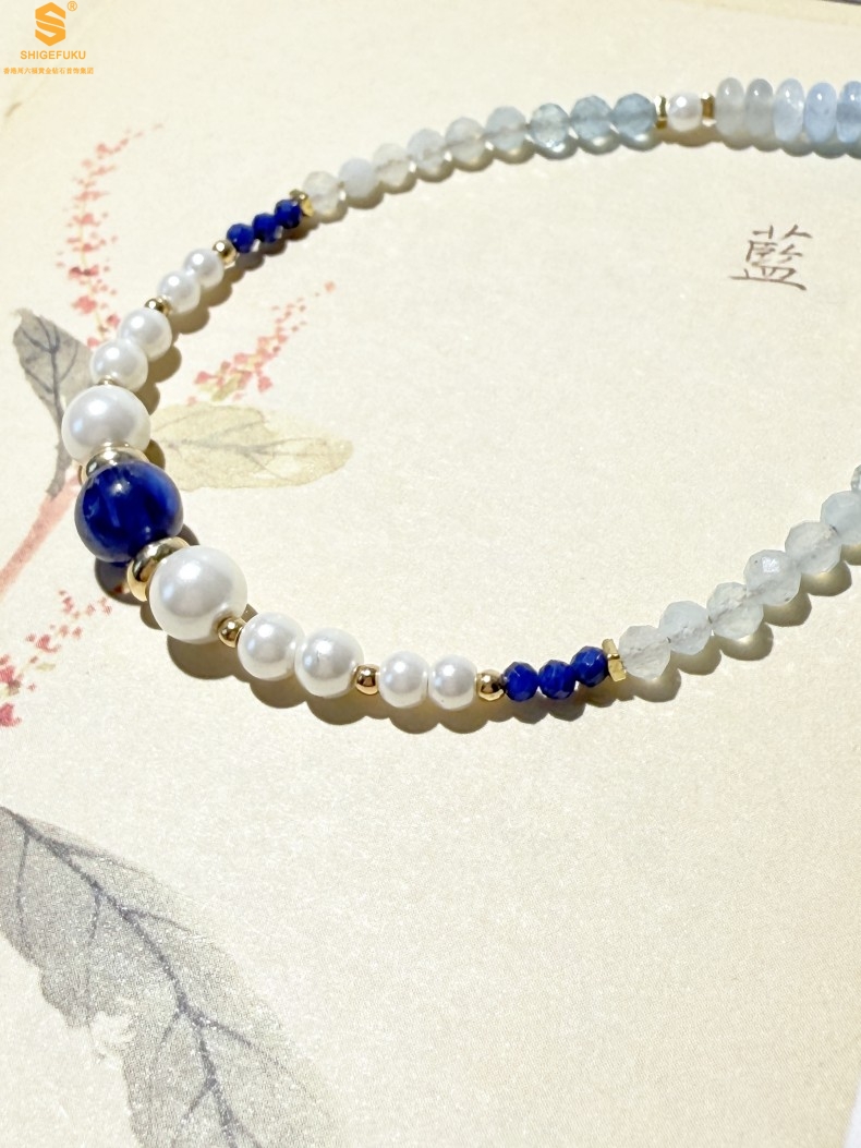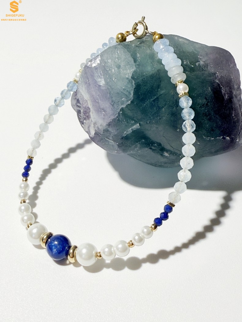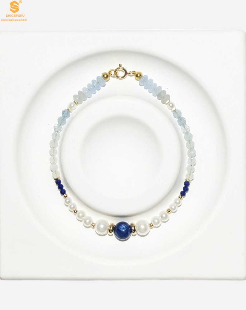 【品名】原创「青岚引」新中式国风海蓝宝蓝晶石青金石清醒旺运手链