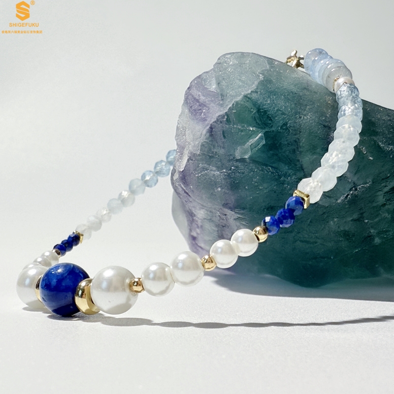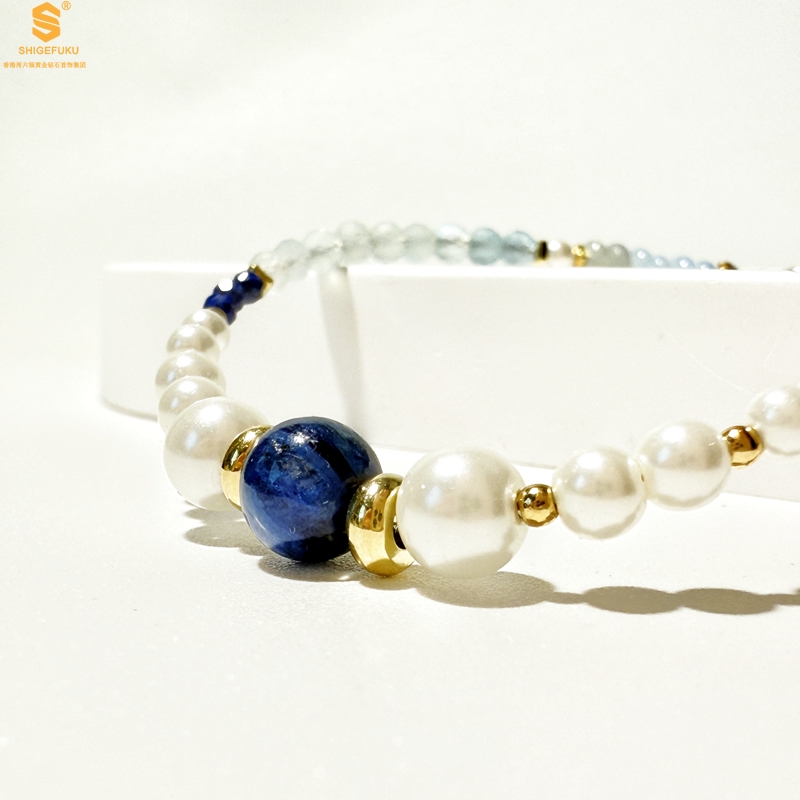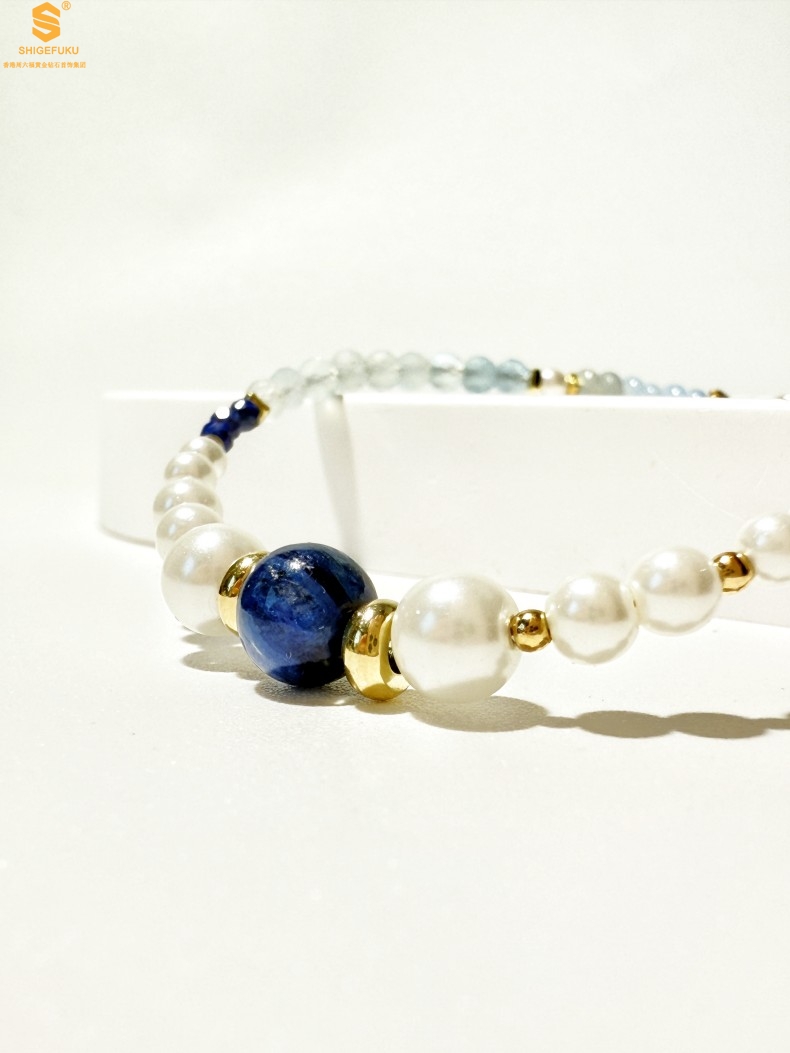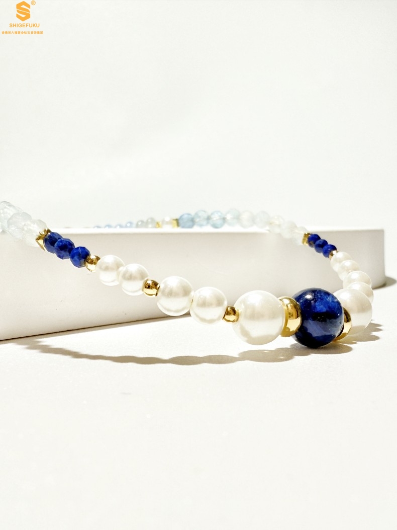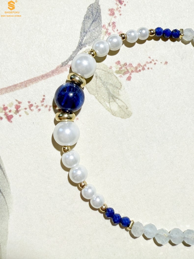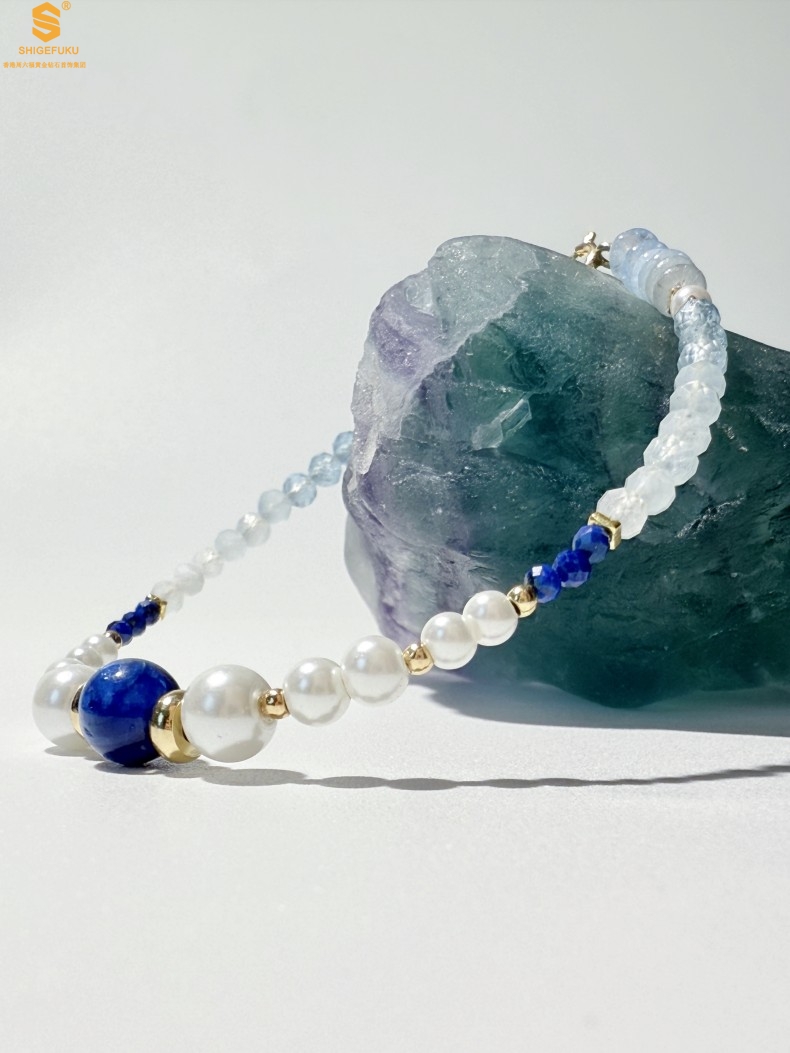 【品名】原创「青岚引」新中式国风海蓝宝蓝晶石青金石清醒旺运手链