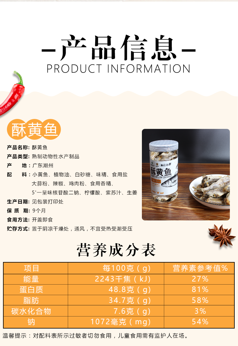 潮农投即食海鲜(酥黄鱼)95g/瓶