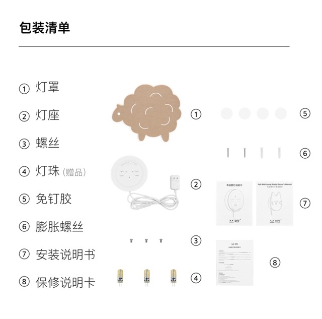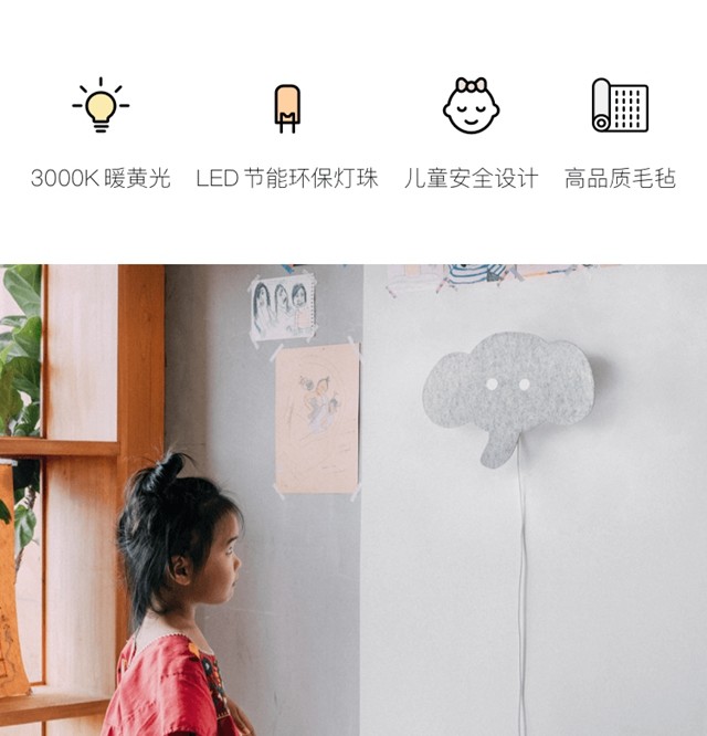 毛毡壁灯:儿童房卧室睡眠灯北欧简约卡通led墙灯免打孔