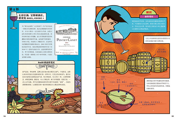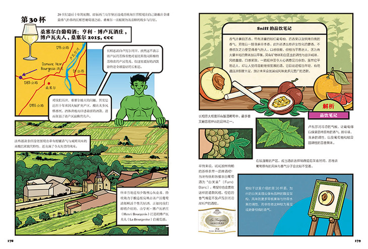 《33杯尽品法国葡萄酒精髓 大师教你掌握产区风土、酿酒风格与品鉴技巧》由漫画主角Sniff讲述,首先介绍了产区地图,让读者一目了然地了解到产区和酒庄的地理位置,接着进入单只酒款的深入讲解。在简单的讲述之后,会附上葡萄酒大师对酒款的品饮笔记及酿造因素的分析。其次,《33杯尽品法国葡萄酒精髓 大师教你掌握产区风土、酿酒风格与品鉴技巧》列出的推荐款酒单都是著名产区的代表产品,它们能够全方位地展现出法国葡萄酒的醇美和多元化。