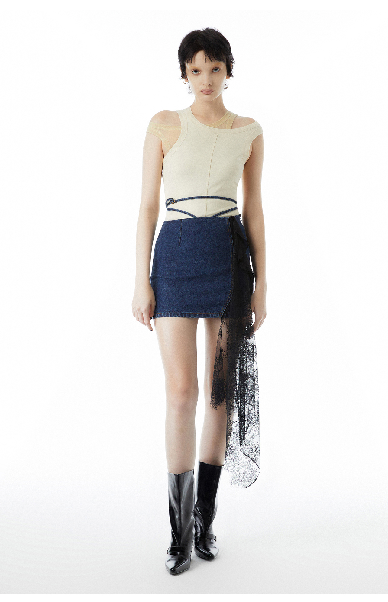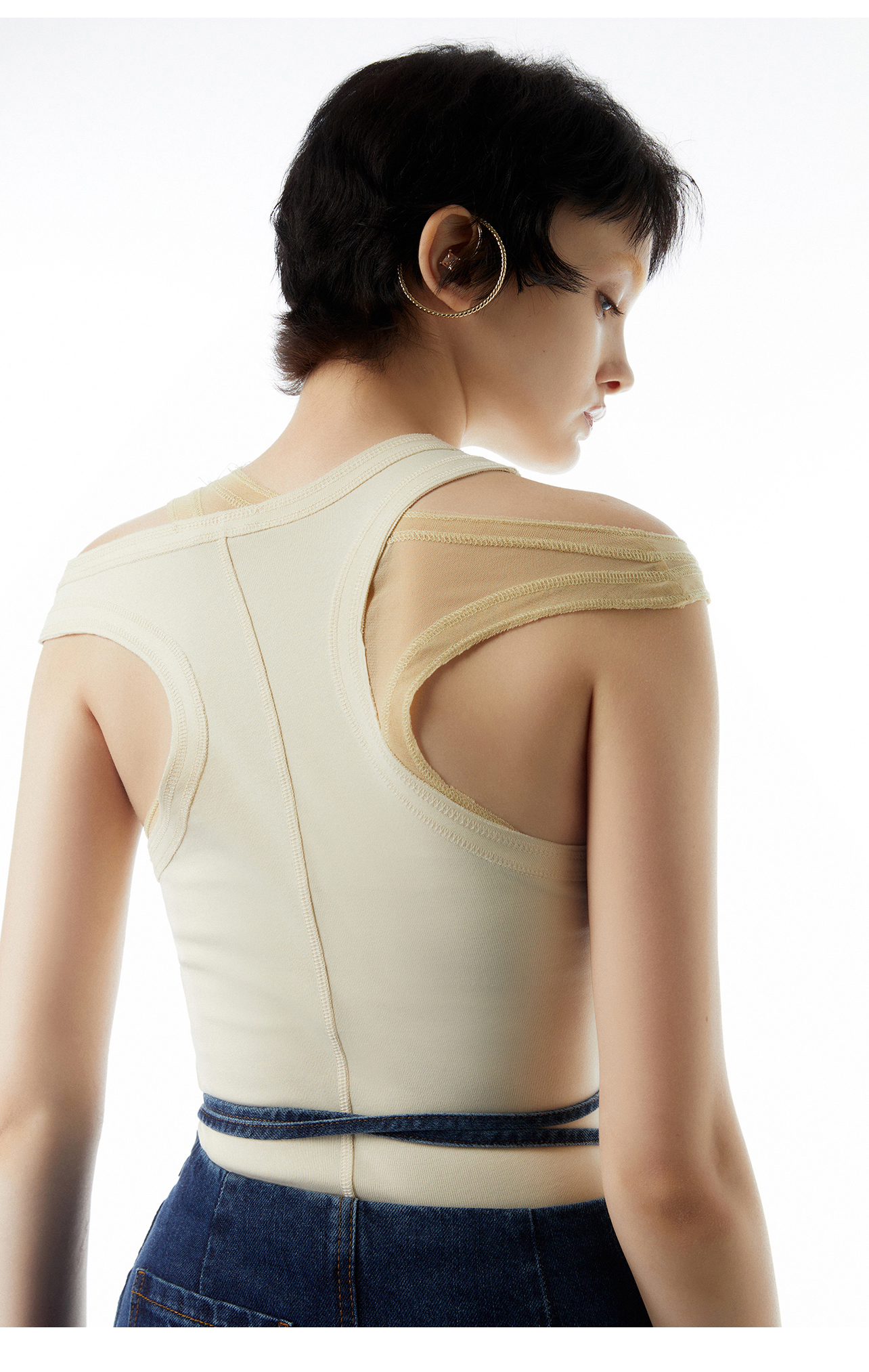 lost in echo 2023春夏新款Aliz系列修身网纱工字背心两件套装