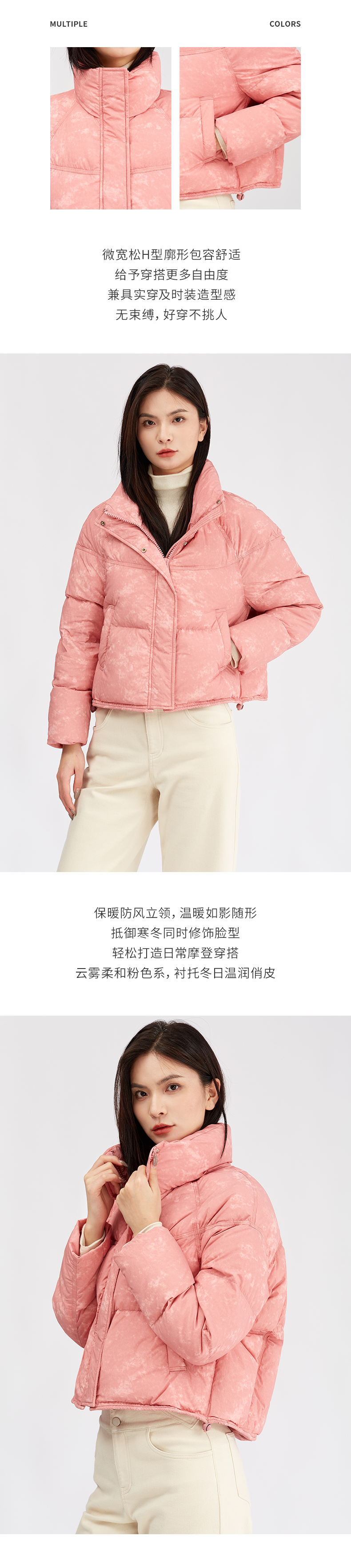 【miu系泡芙羽绒服】阿菁娜冬季新款miu系泡芙羽绒服短款立领设计云雾粉温柔宽松H版型F30D516008