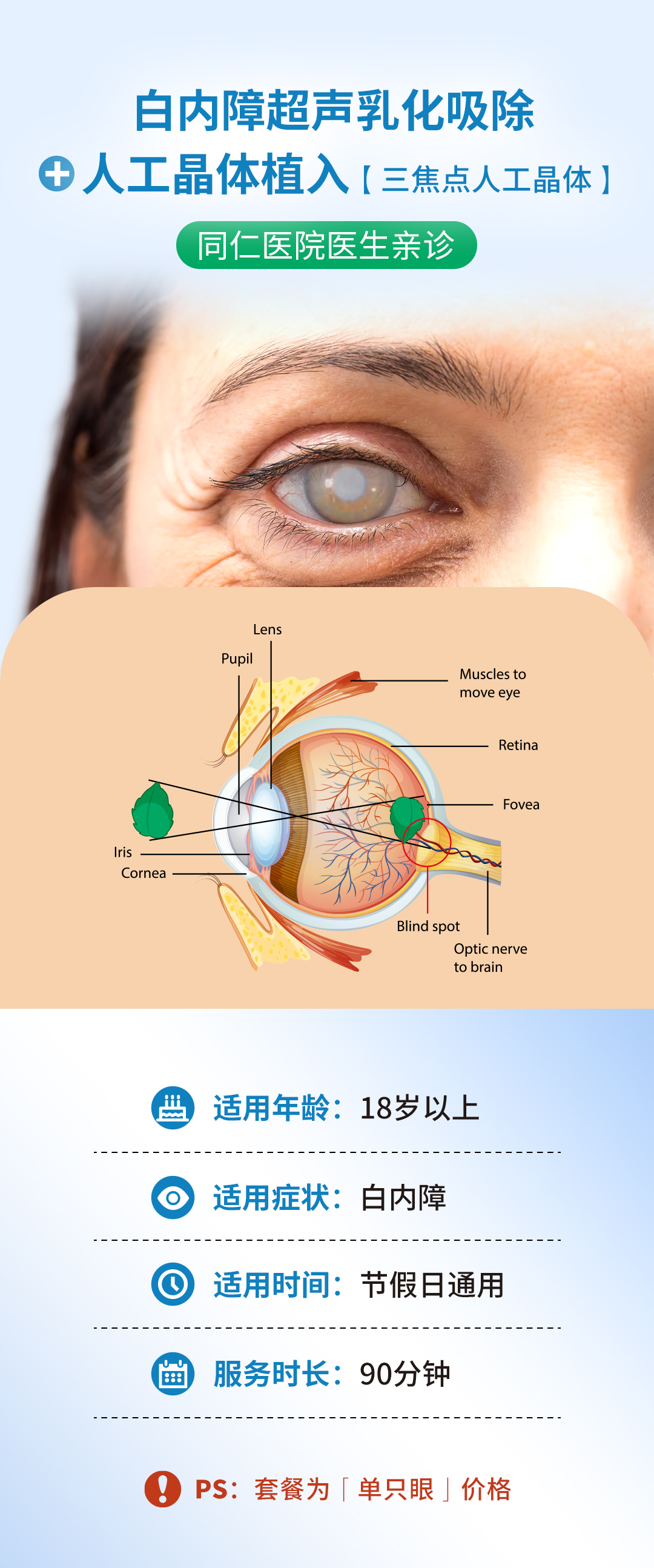 白内障超声乳化吸除+人工晶体植入(三焦点人工晶体)(同仁医院医生)