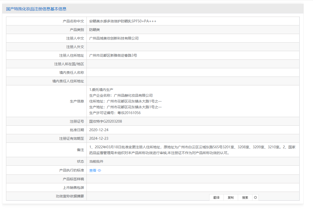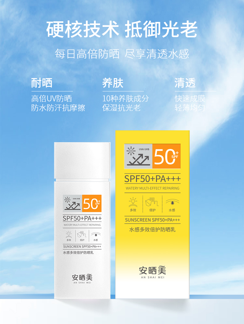 产品名称:安晒美水感多效倍护防晒乳
