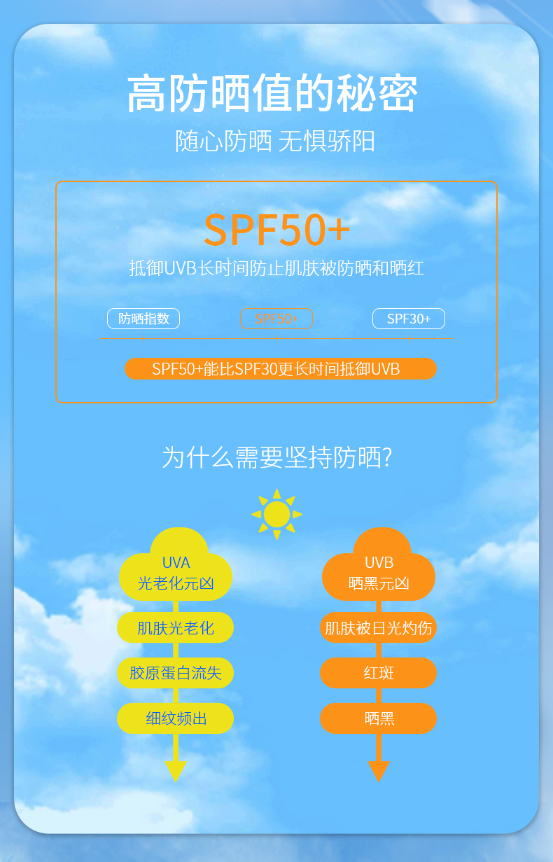 持久防晒黑、晒伤、晒老,