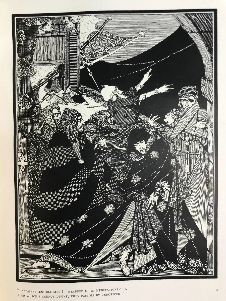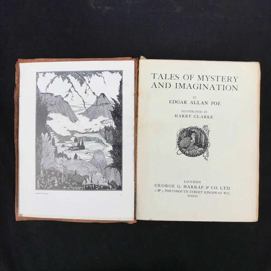 含藏书票!1919年 爱伦坡《神秘与幻想故事集》 哈利·克拉克24幅插图 真皮软面装16开