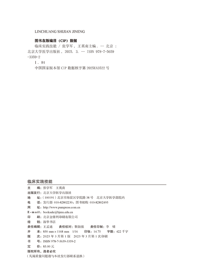 临床实践技能 高等医学院校实验教材 张学军 王英南 内容包括心电图描记心肺复苏术注射技术静脉输液动脉穿刺等北京大学医学出版社