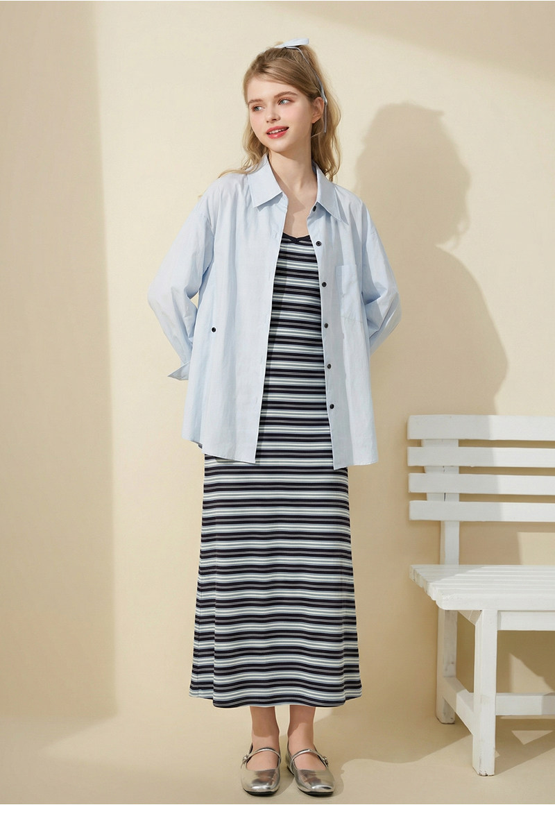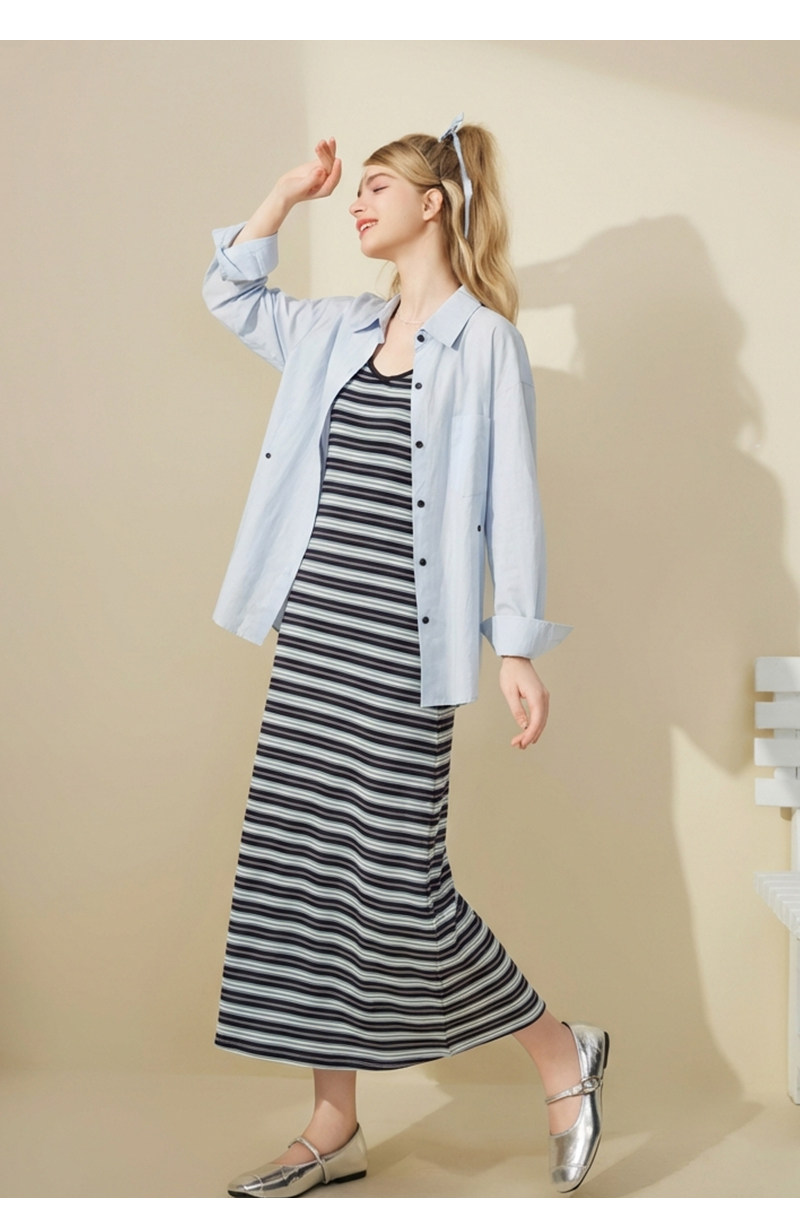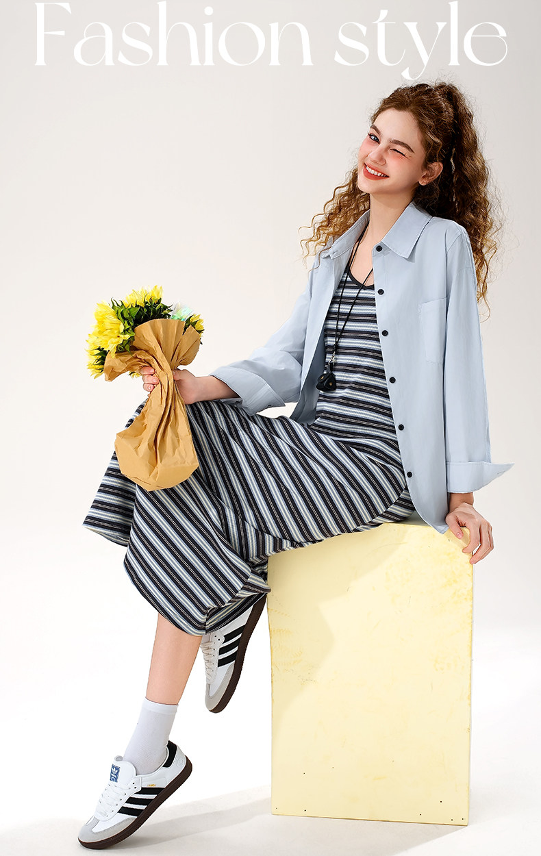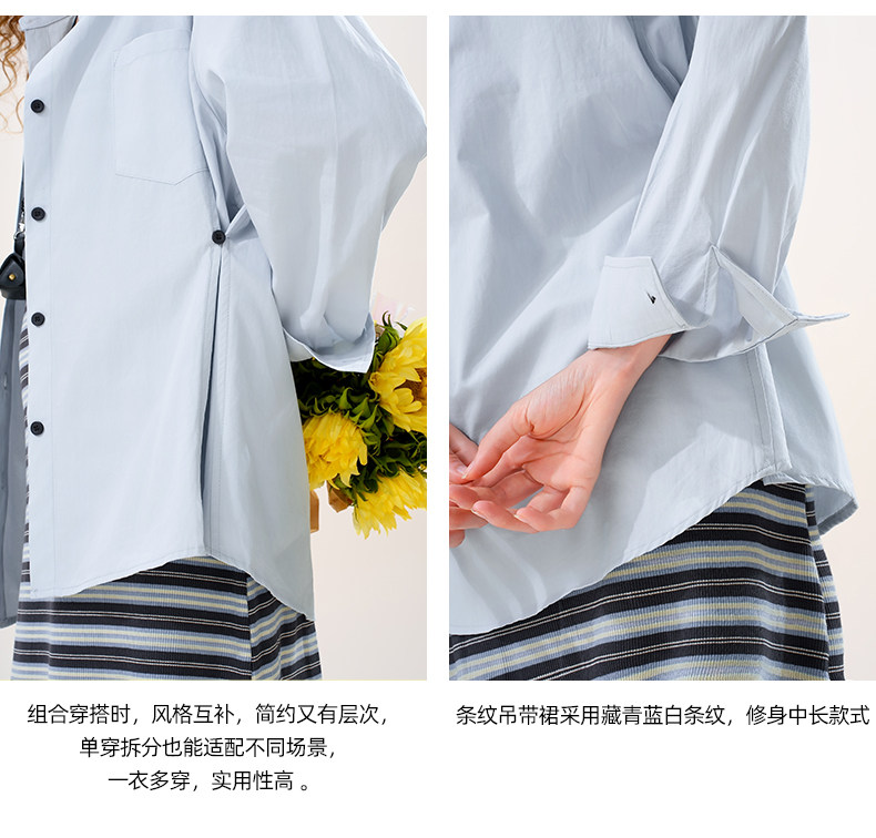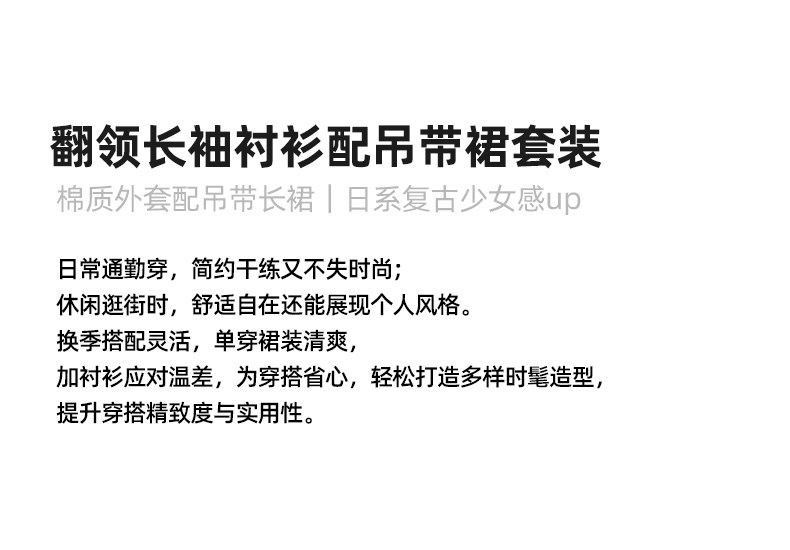 mc2蓝色翻领长袖衬衫配吊带裙套装女装春秋季新款中长款时尚好看