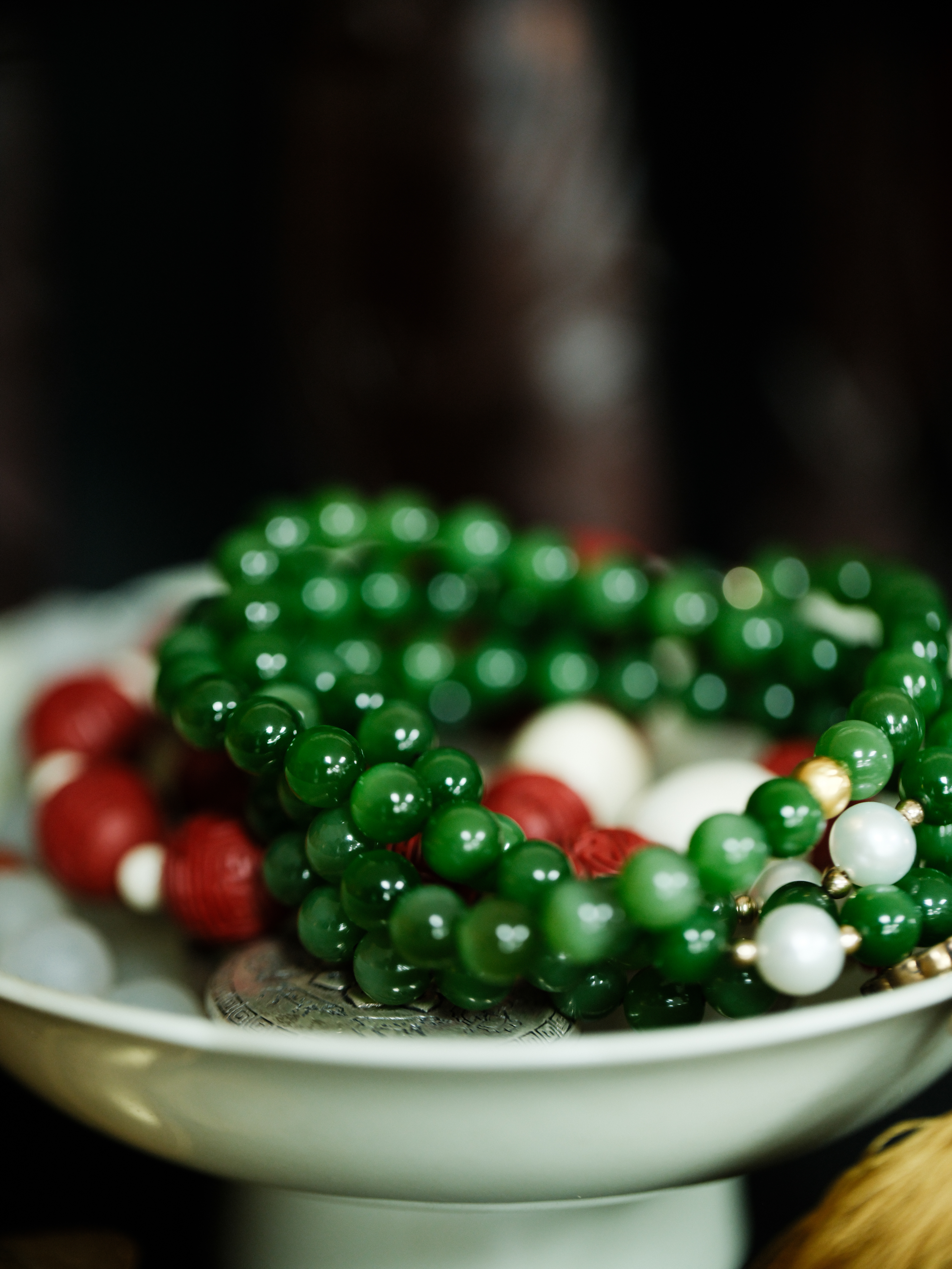 老坑碧玉108颗 颗颗带猫眼 珠型0.8cm【器悟雅玩】
