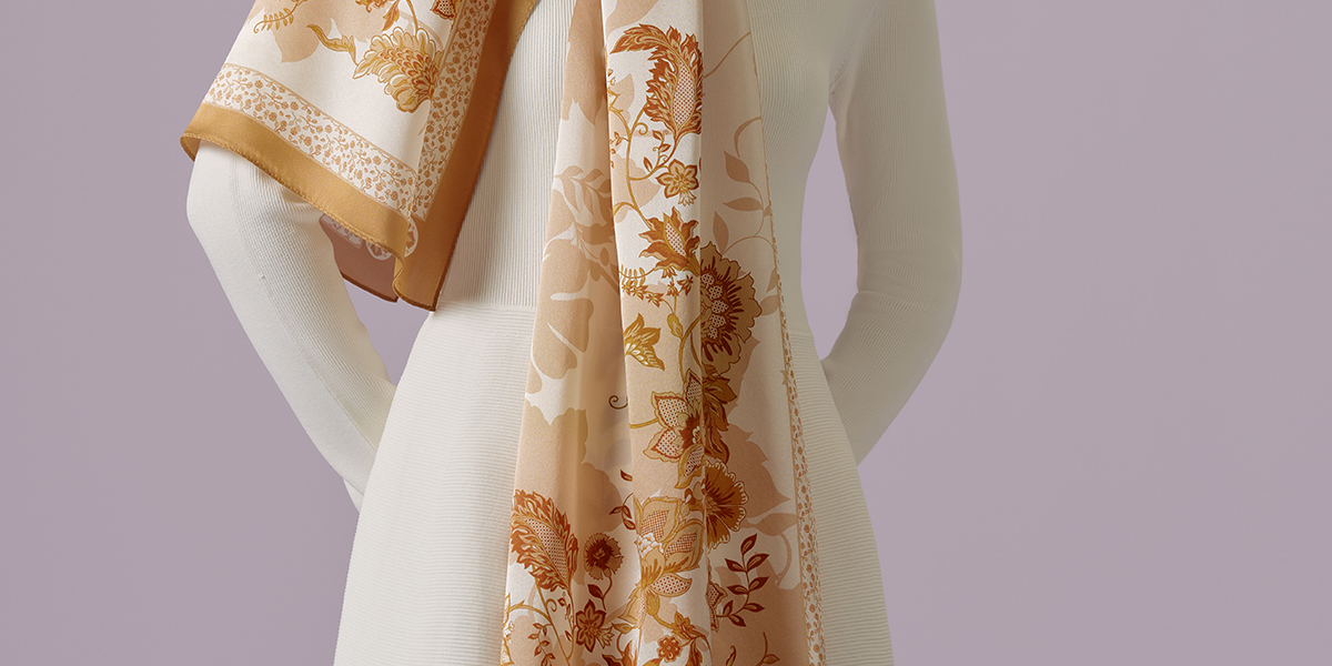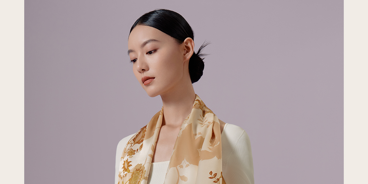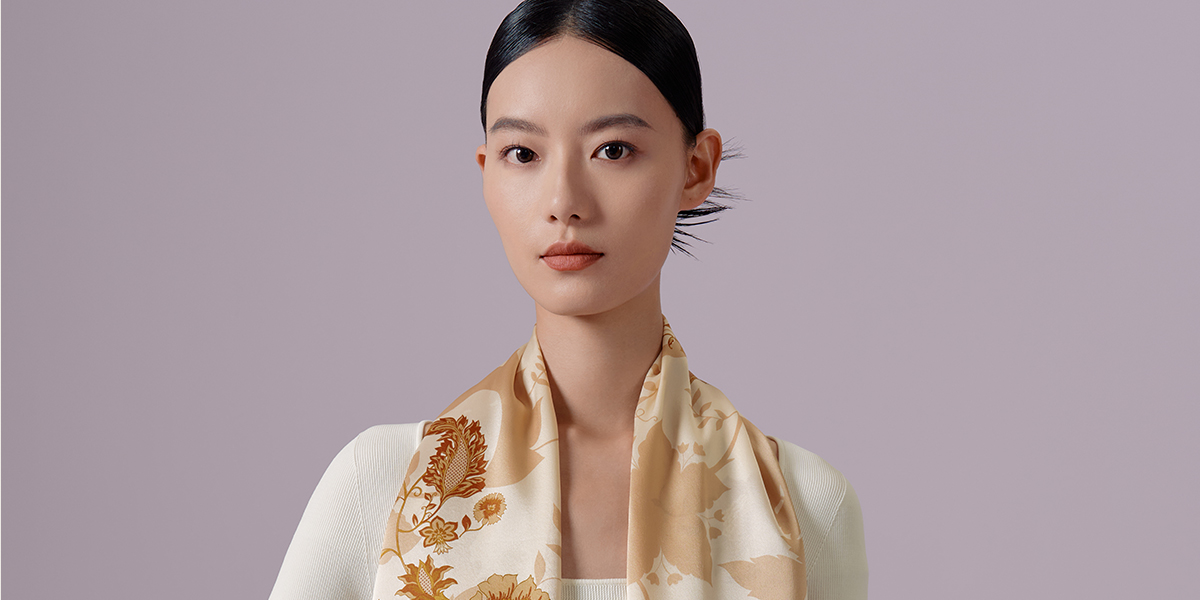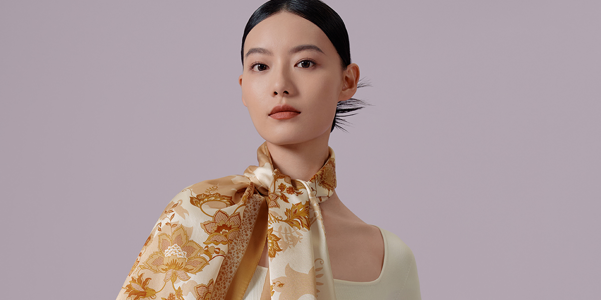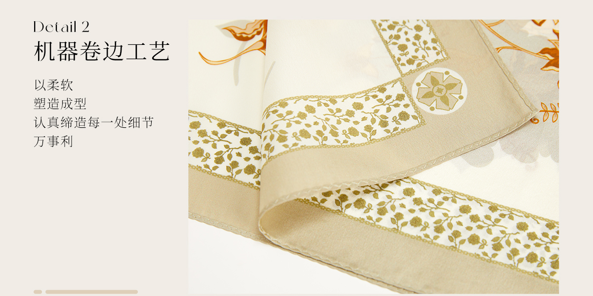 万事利“南国晚风”51厘米双面印花真丝小方巾