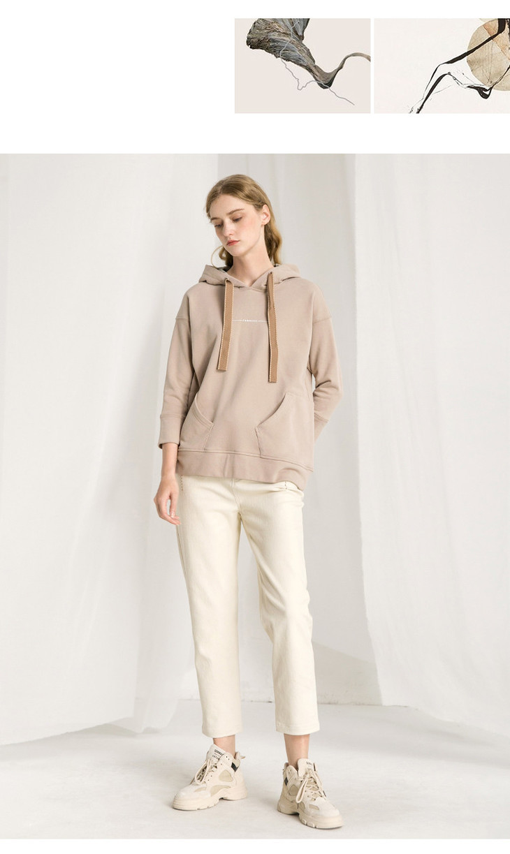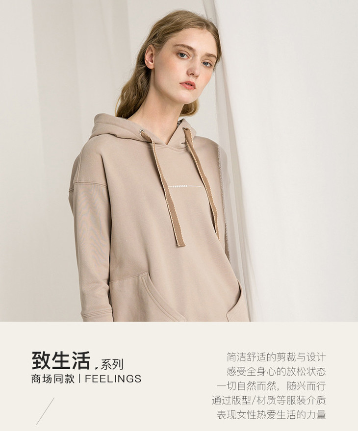Famecoco范可儿卫衣长袖连帽宽松套头上衣D216BE301