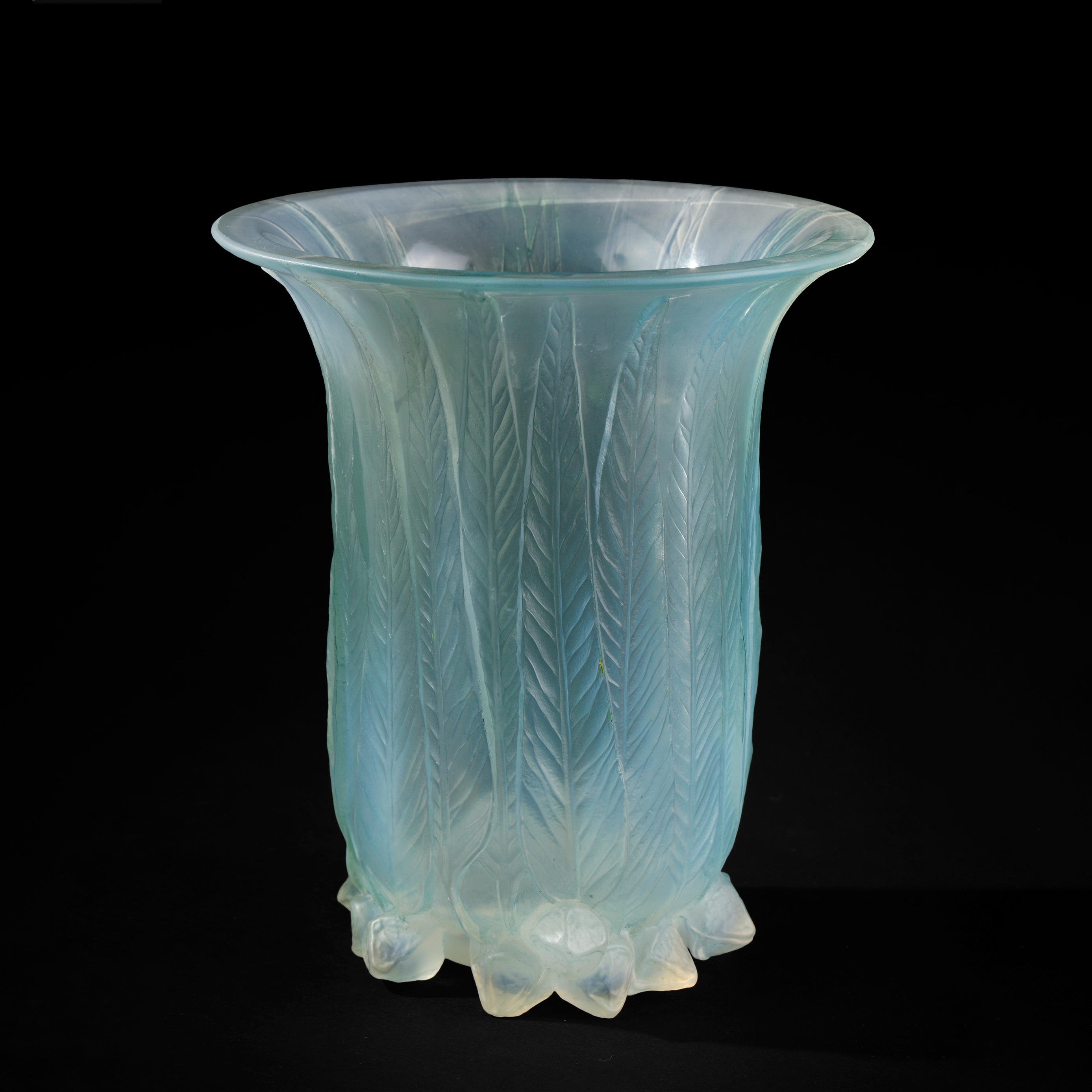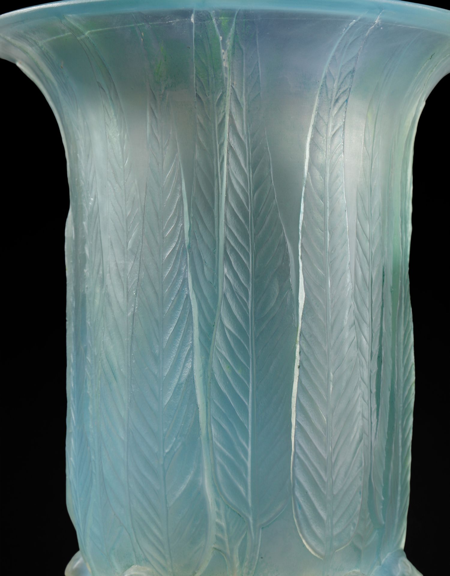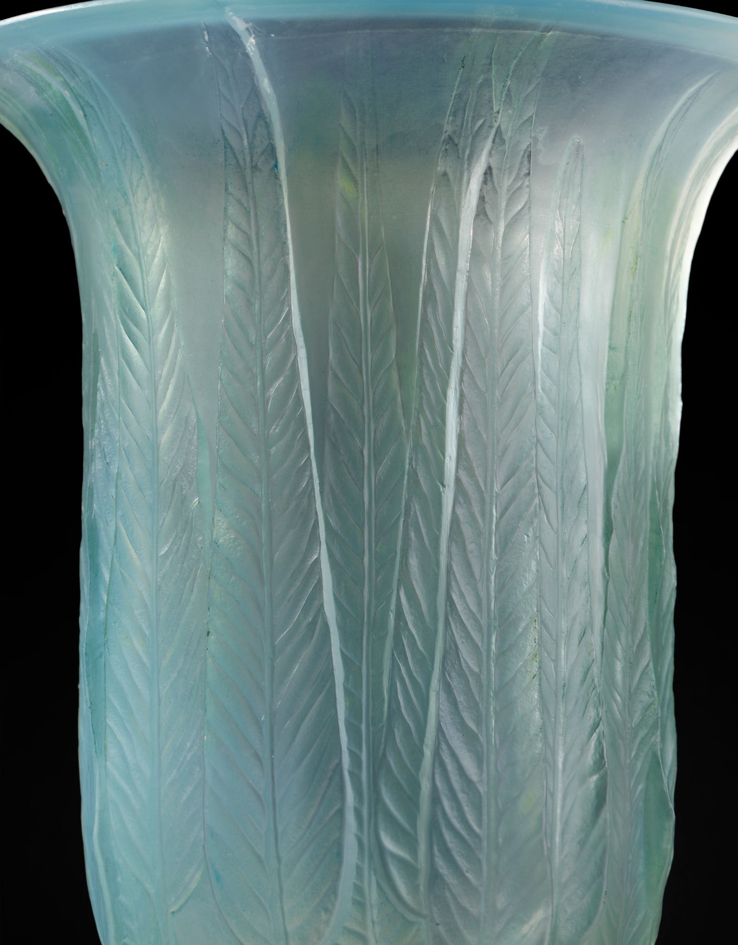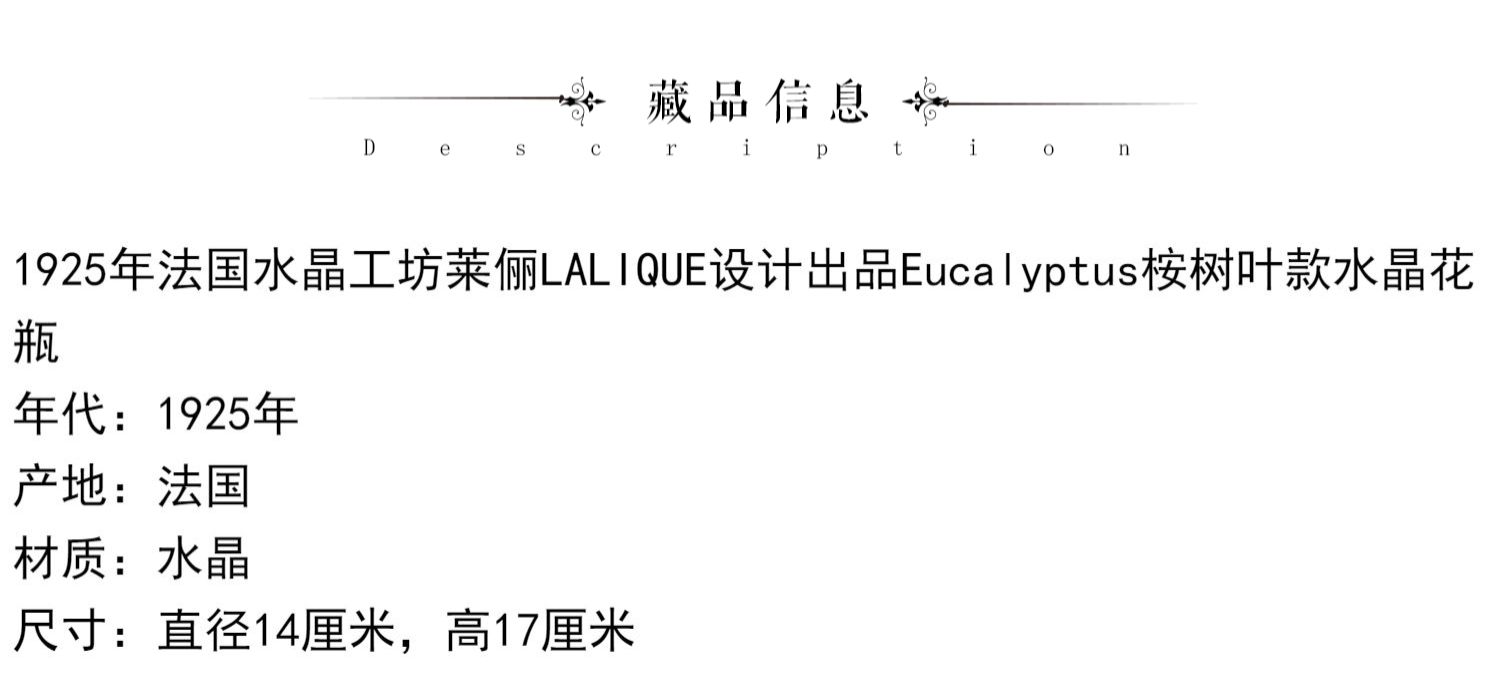 独角鹿西洋古董法国LALIQUE莱俪Eucalyptus桉树叶款水晶花瓶摆件