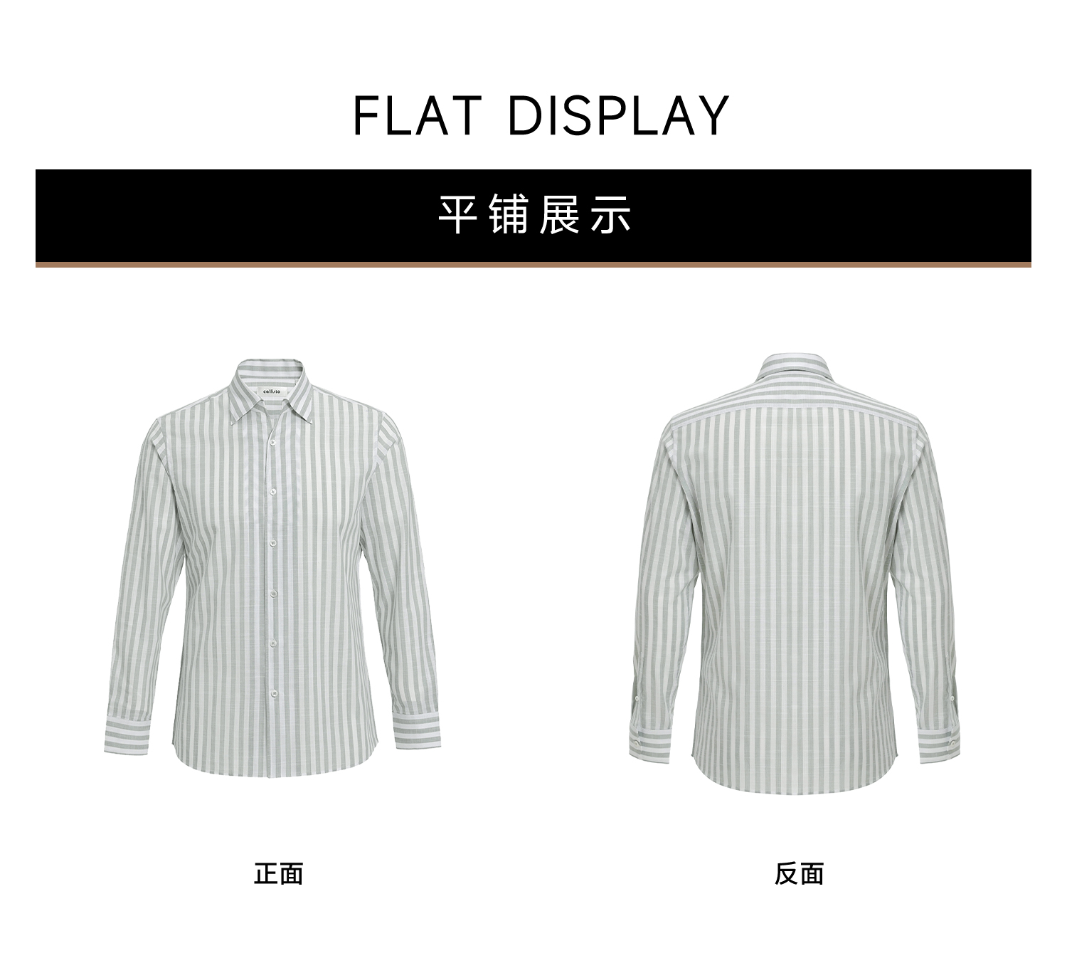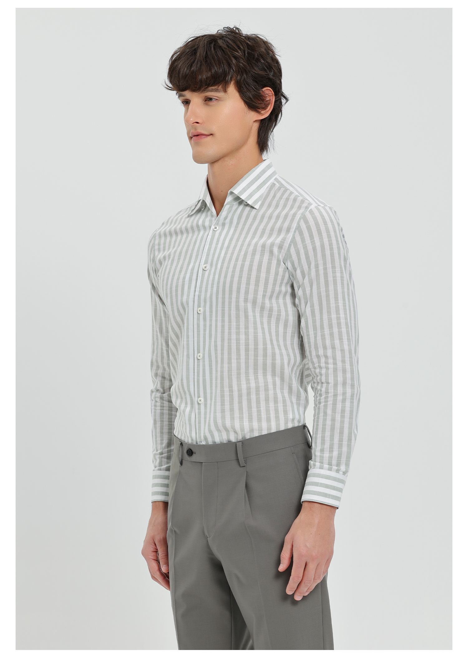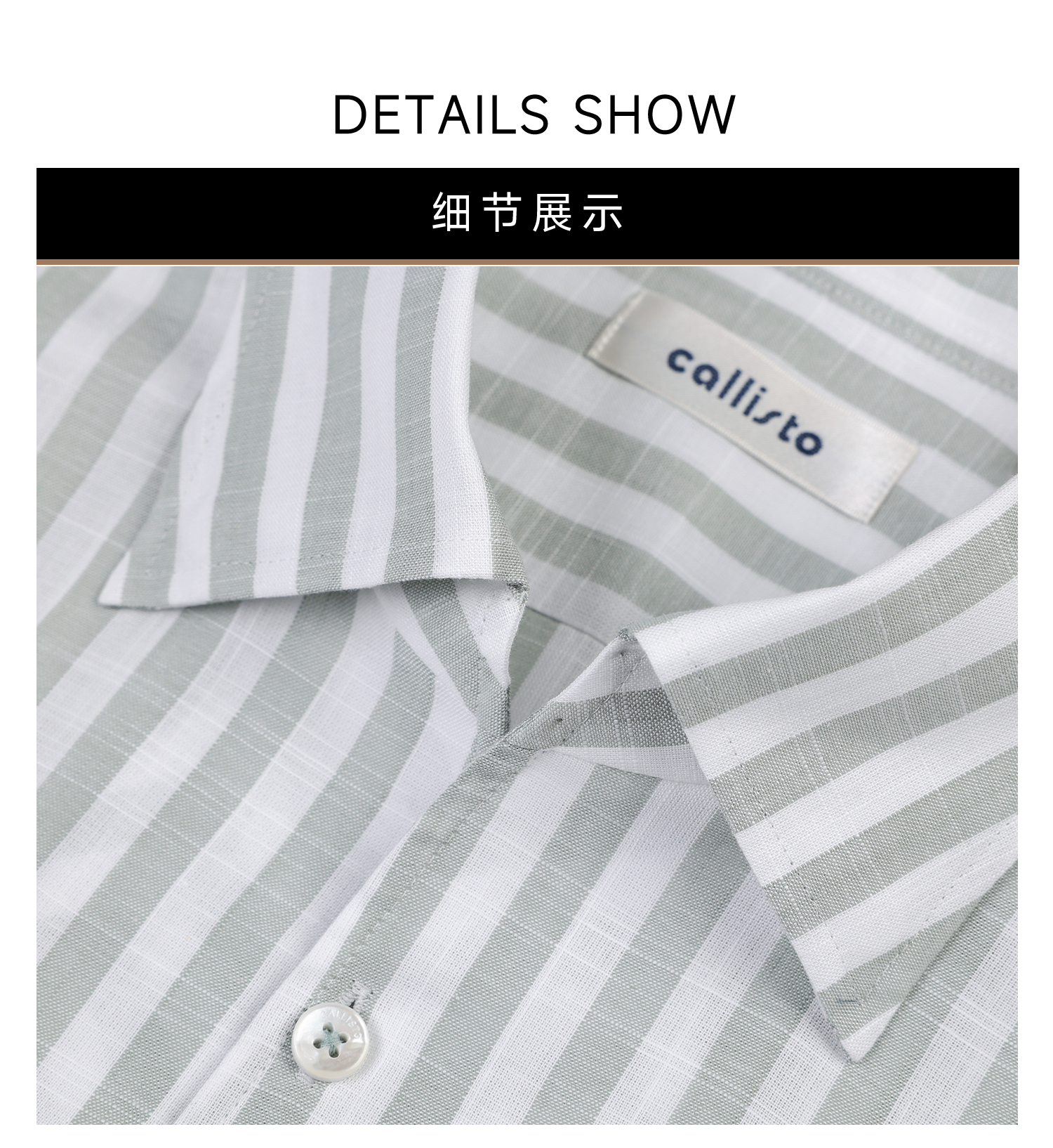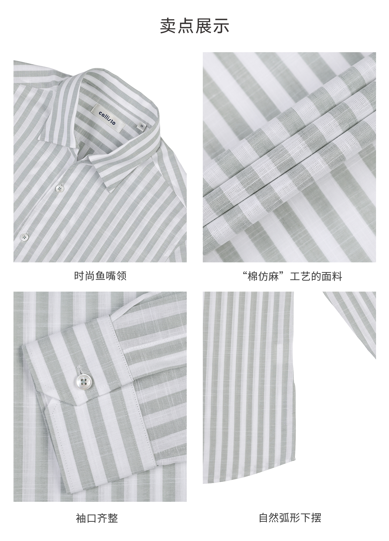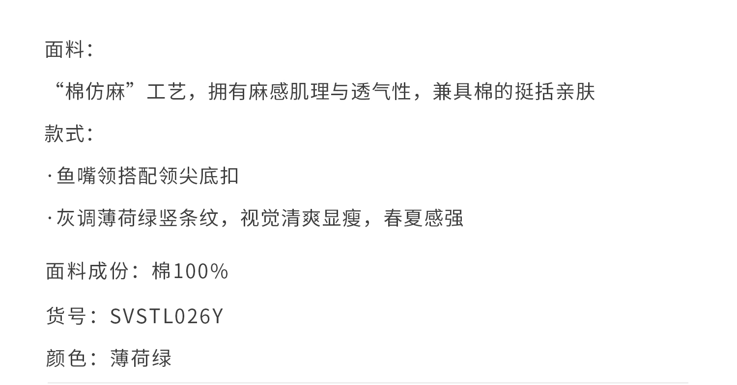 callisto灰调薄荷绿竖条纹鱼嘴领棉仿麻衬衫