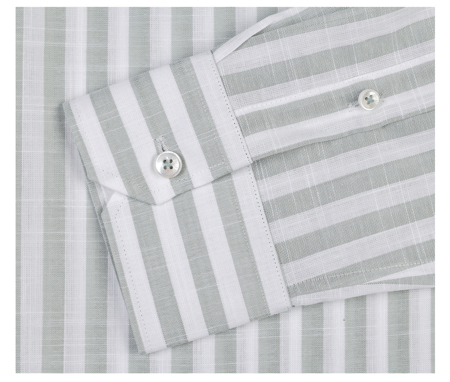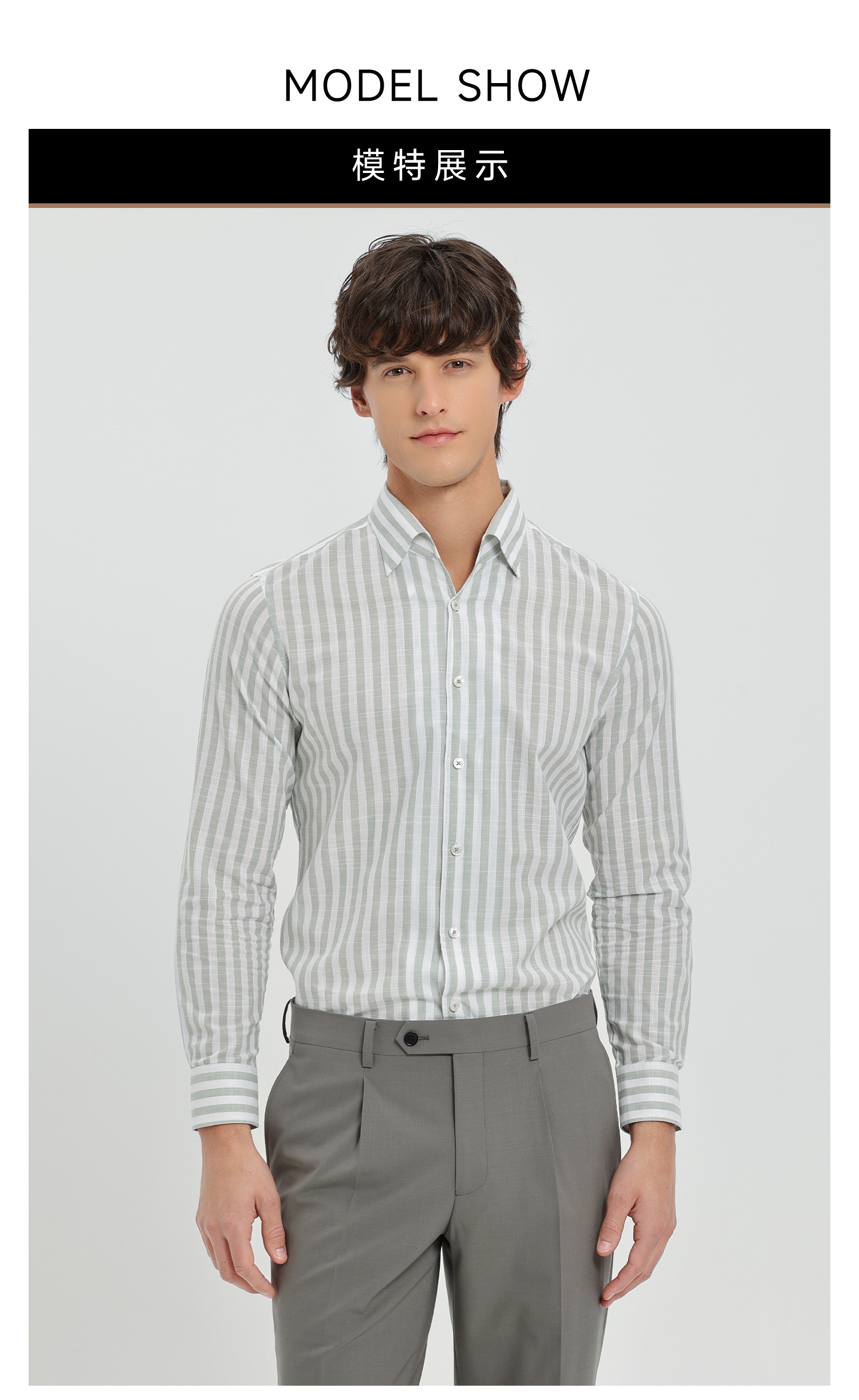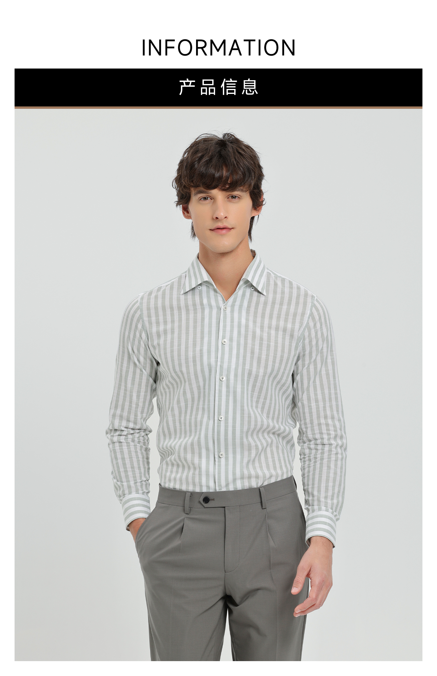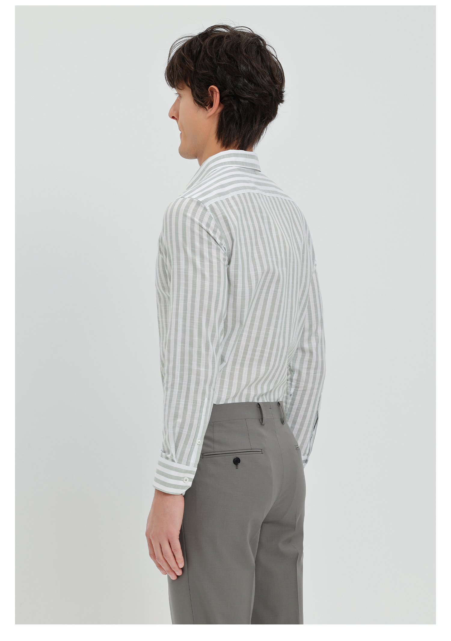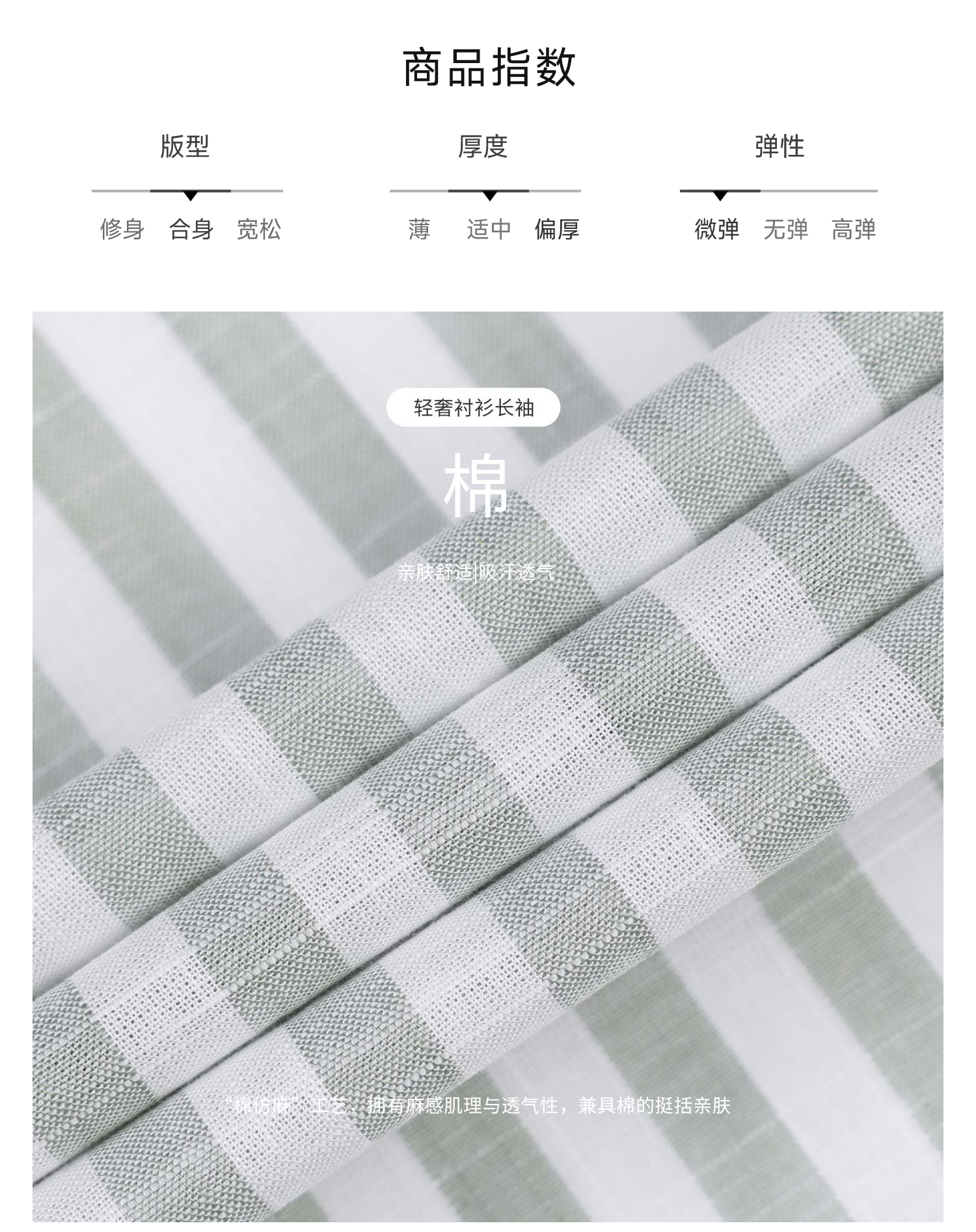 callisto灰调薄荷绿竖条纹鱼嘴领棉仿麻衬衫