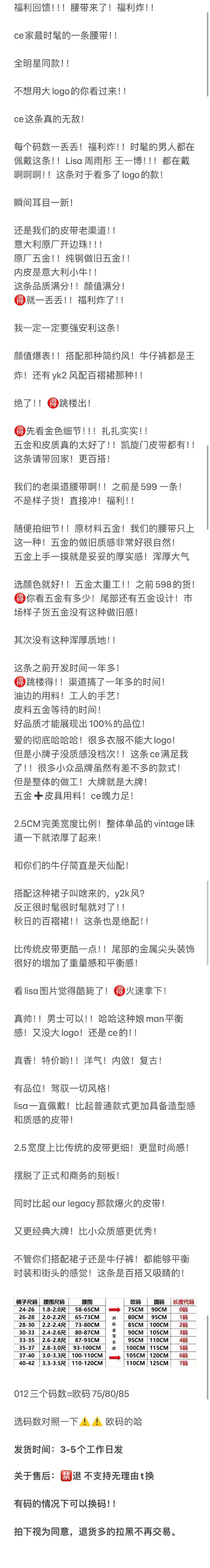 福利秒杀 ce福利腰带 Lisa同款 开边珠牛皮细腰带