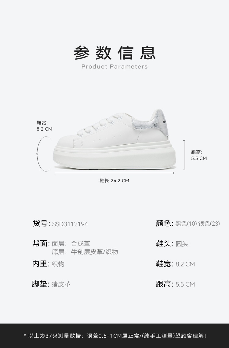 星期六经典白色厚底增高板鞋SSD3112194