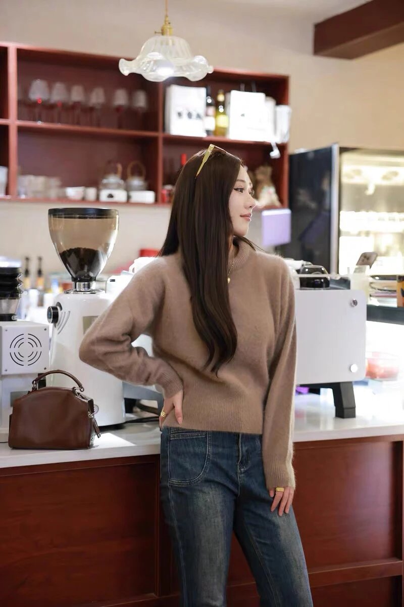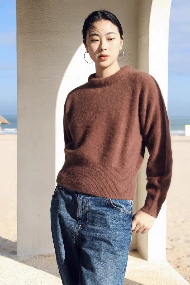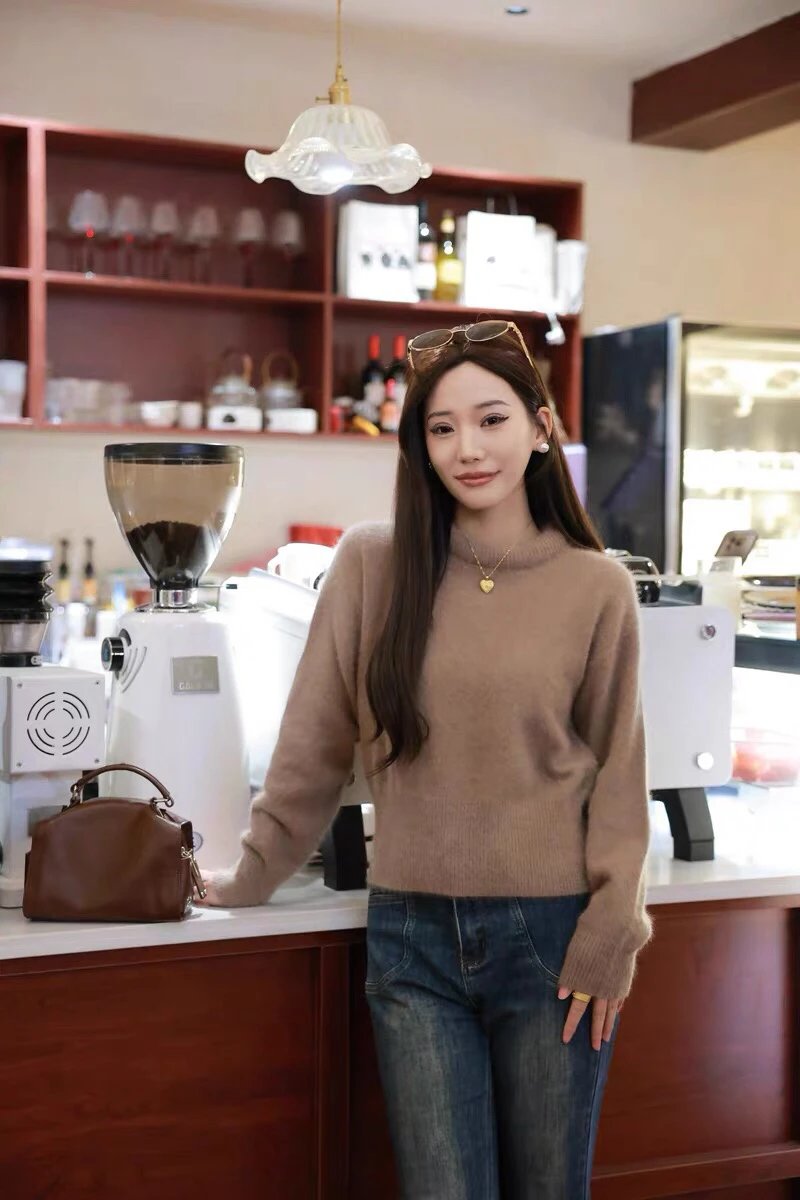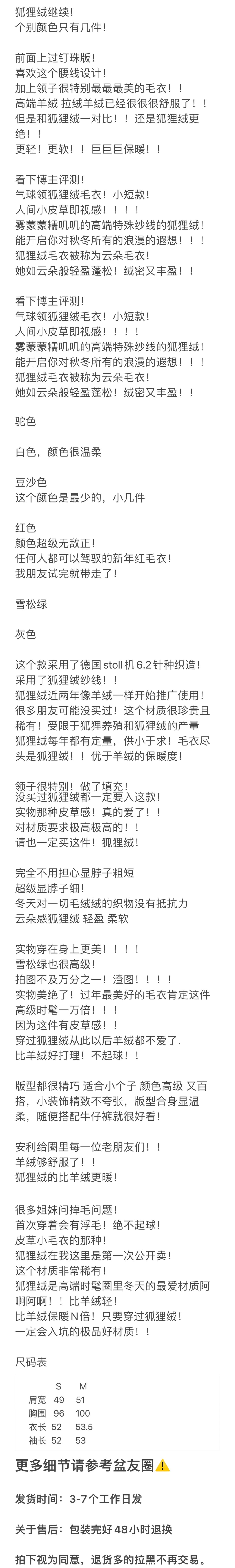 重磅推荐 气球领狐狸绒毛衣 设计师款 小短款圆领针织毛衣