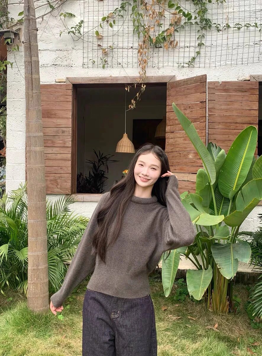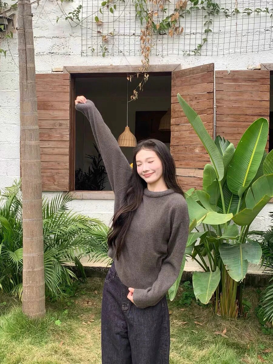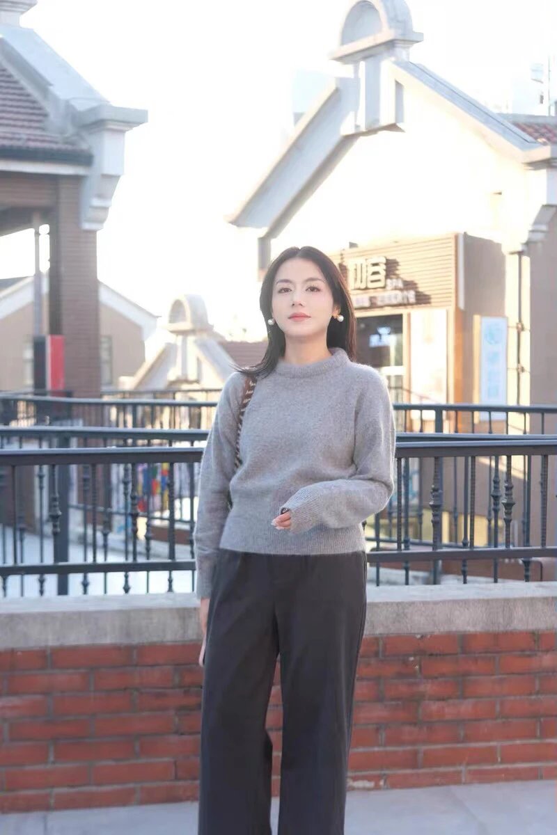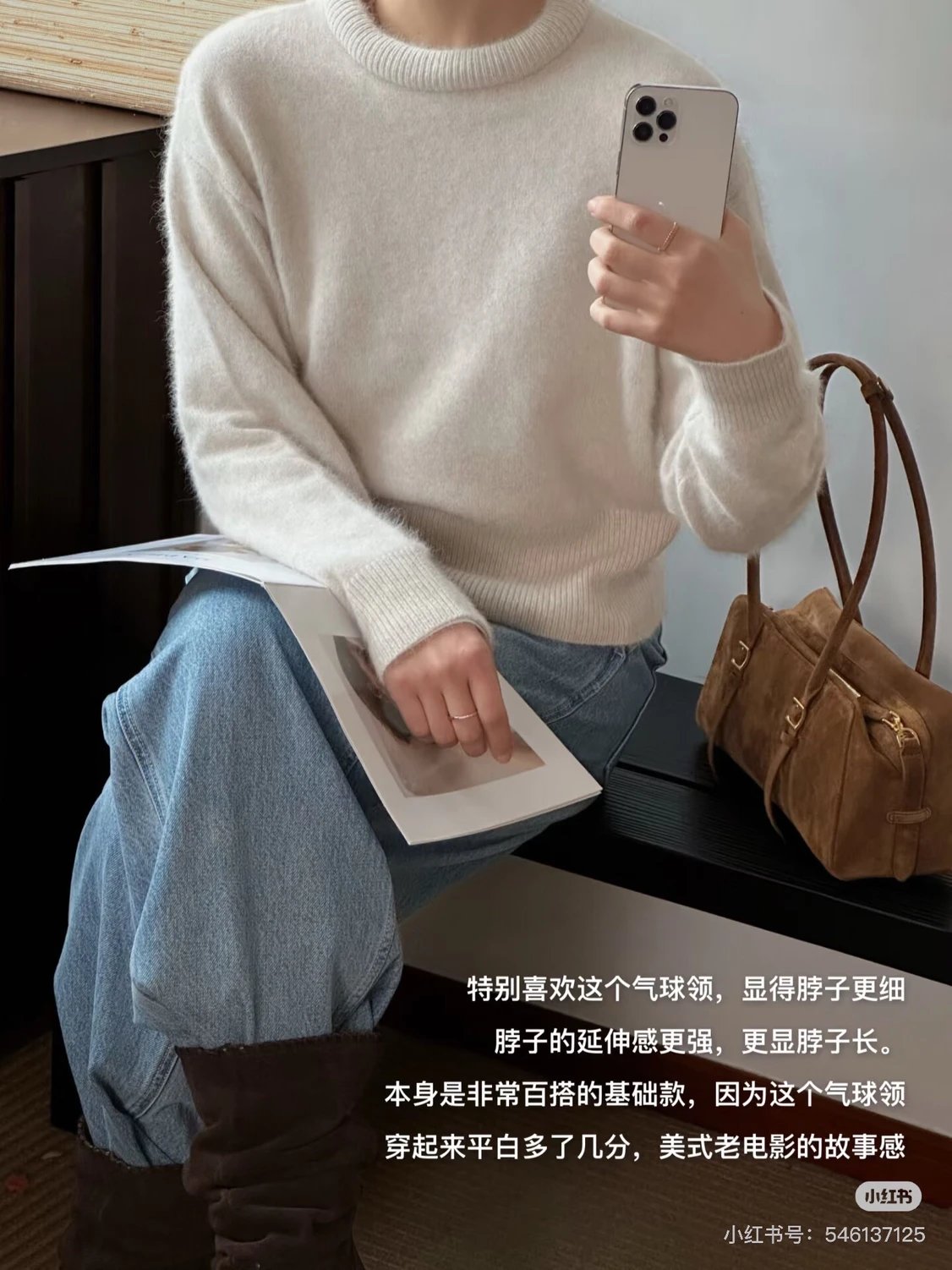 重磅推荐 气球领狐狸绒毛衣 设计师款 小短款圆领针织毛衣