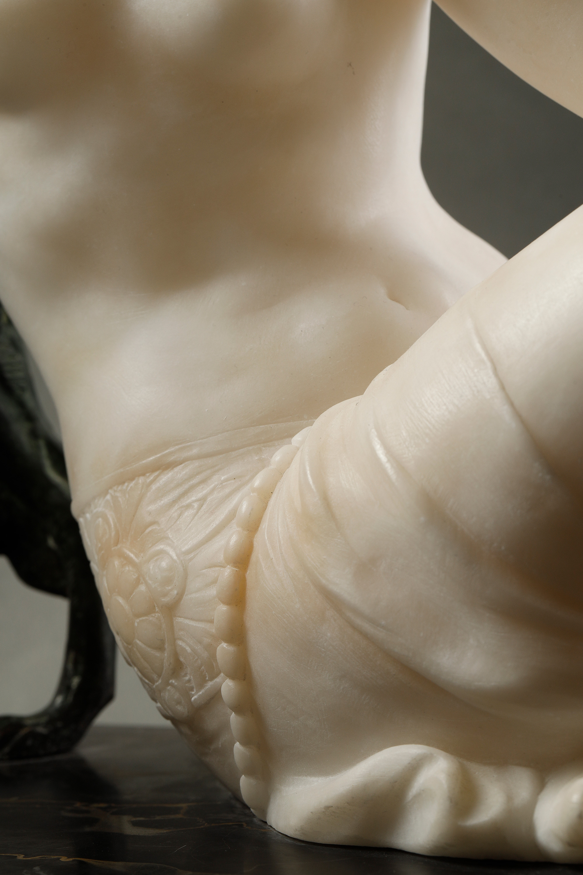 材质:黑色大理石,青铜,雪花石膏,鎏金(臂环)