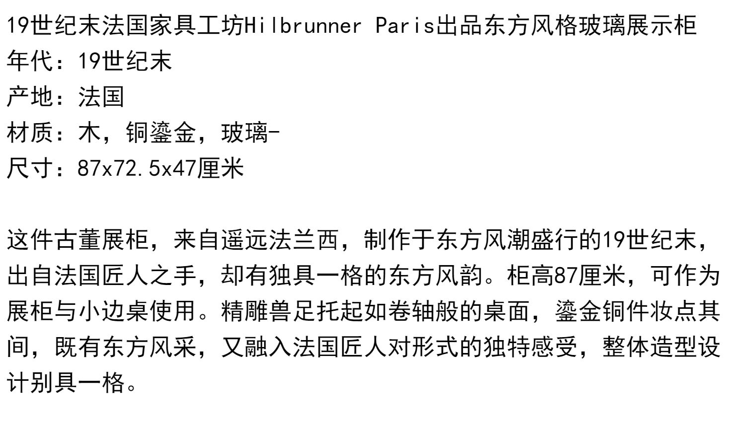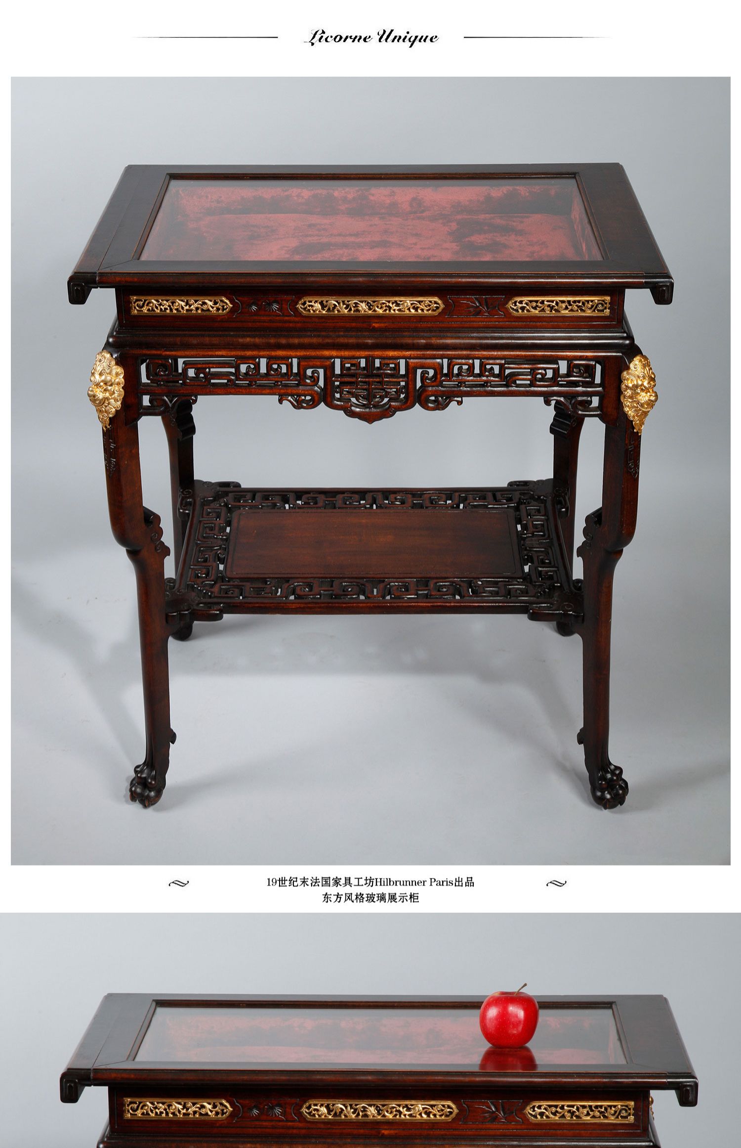 独角鹿西洋古董家具法国出品东方风格玻璃展示柜展示方桌